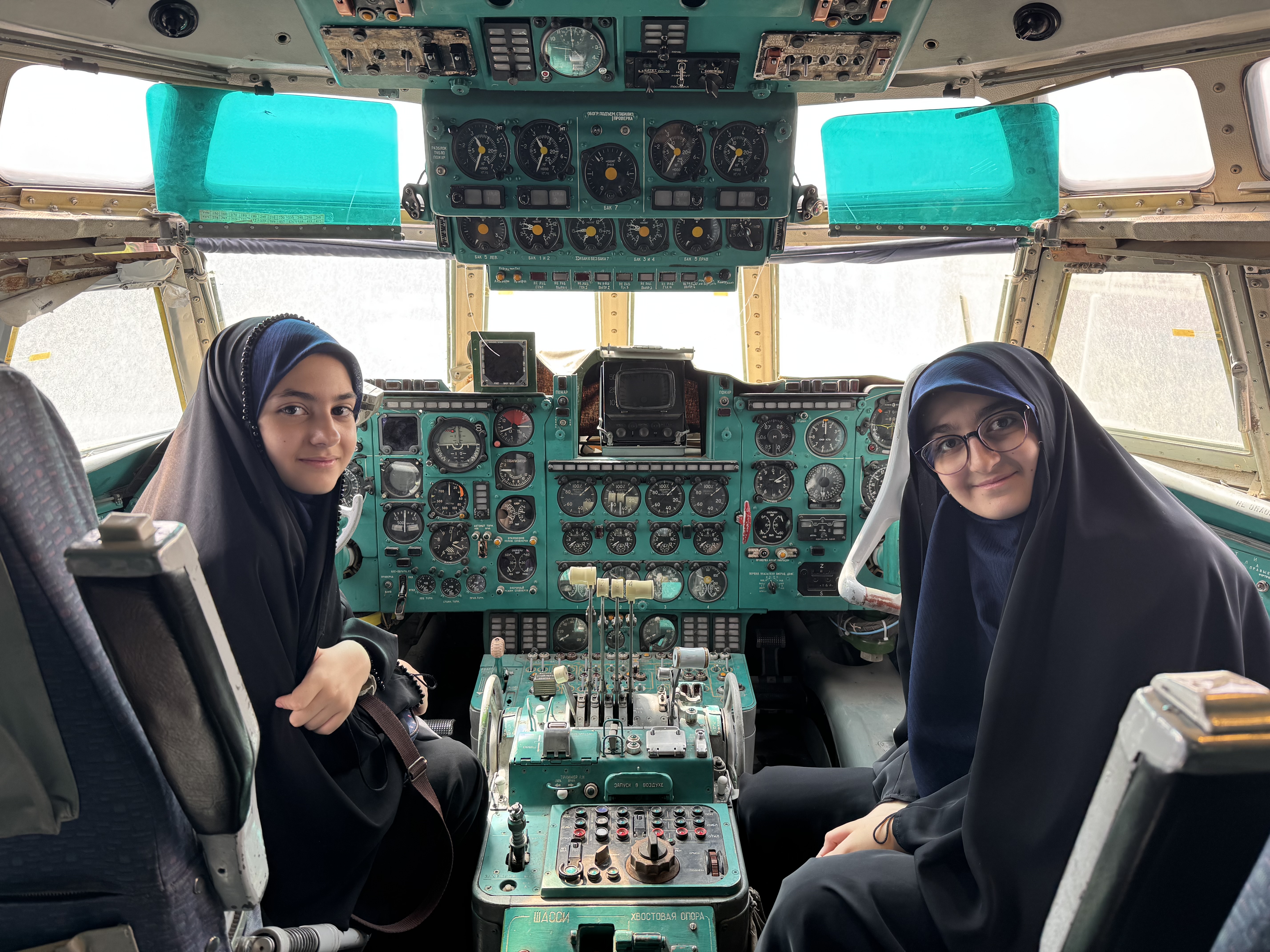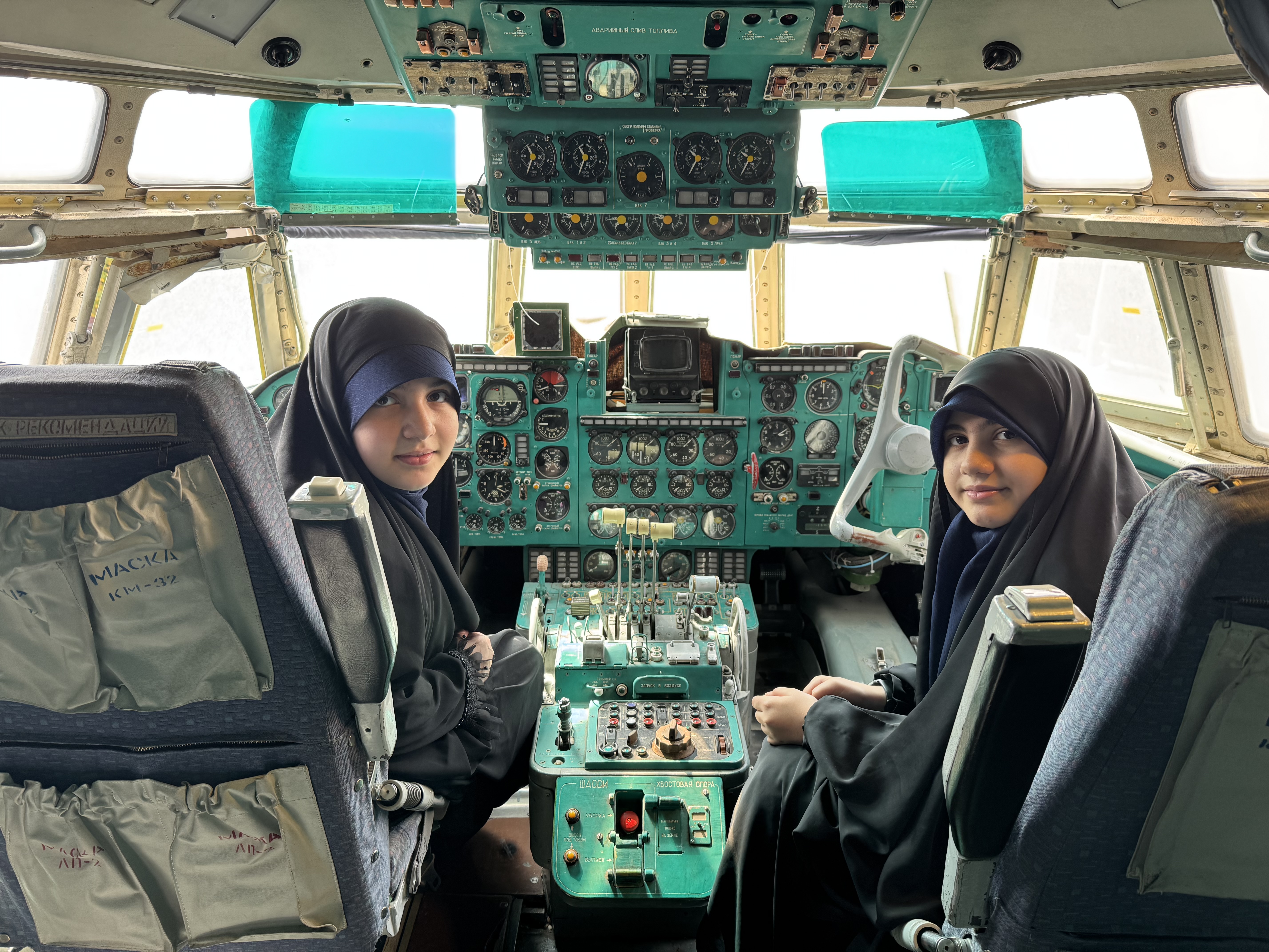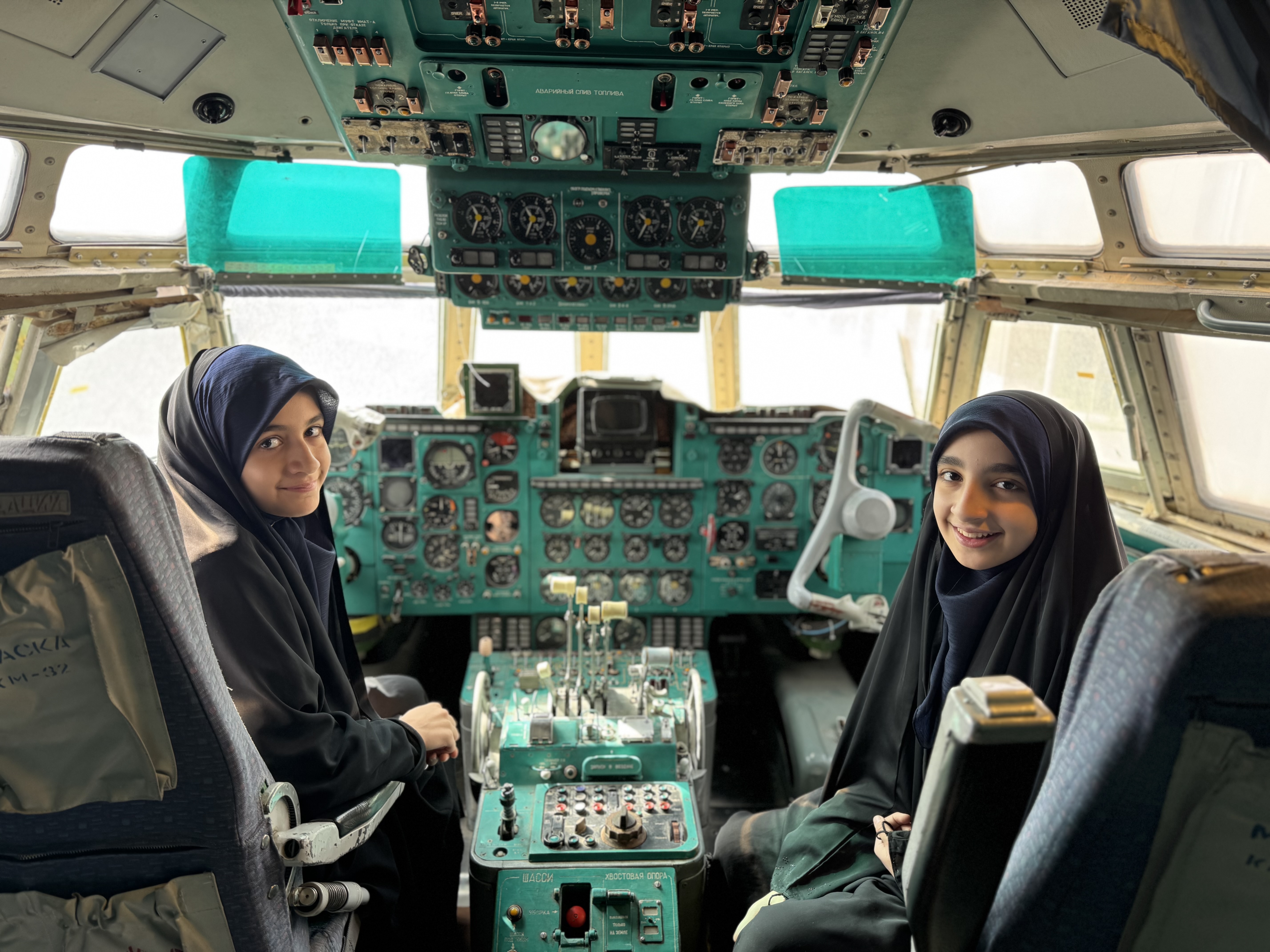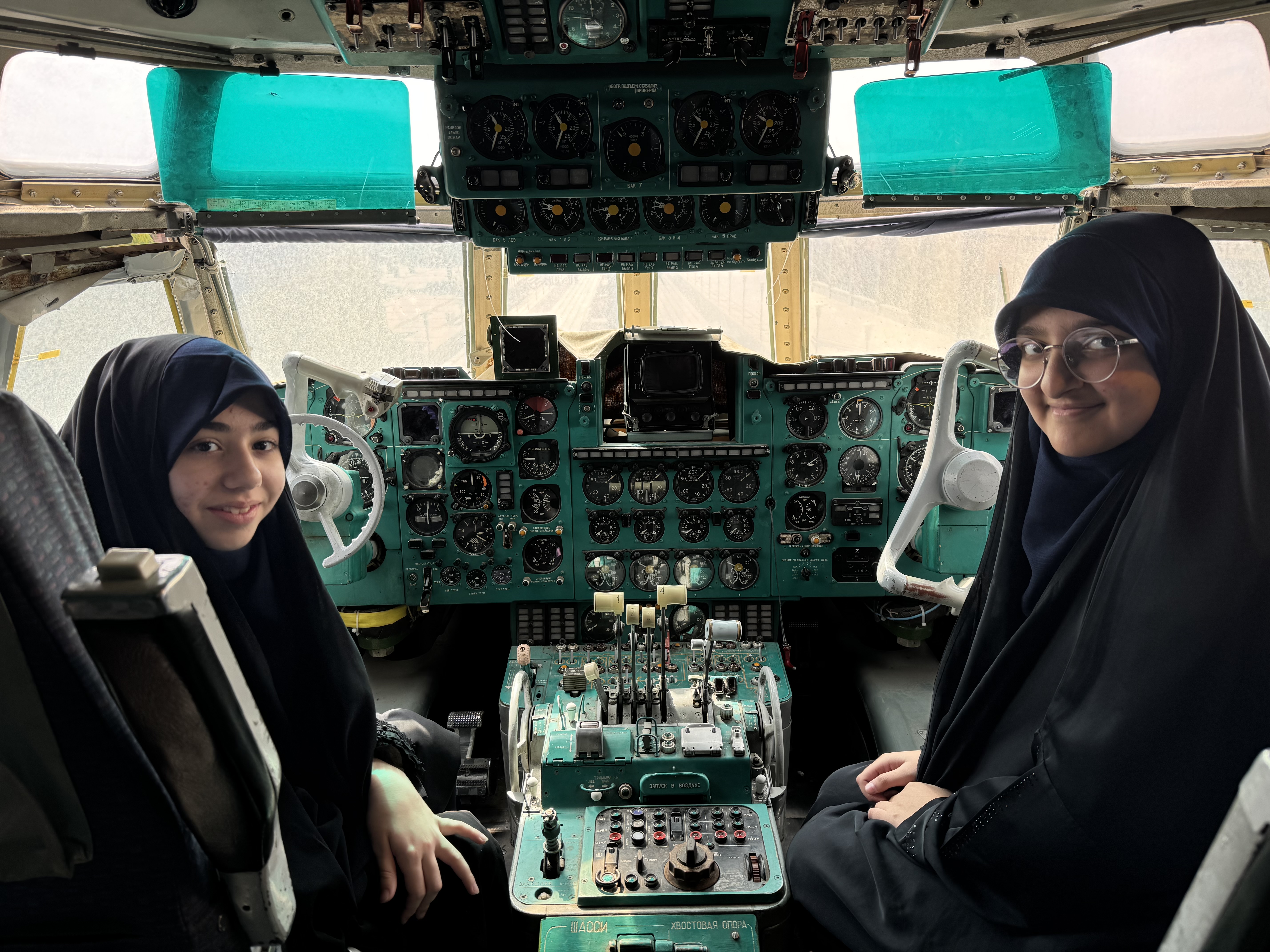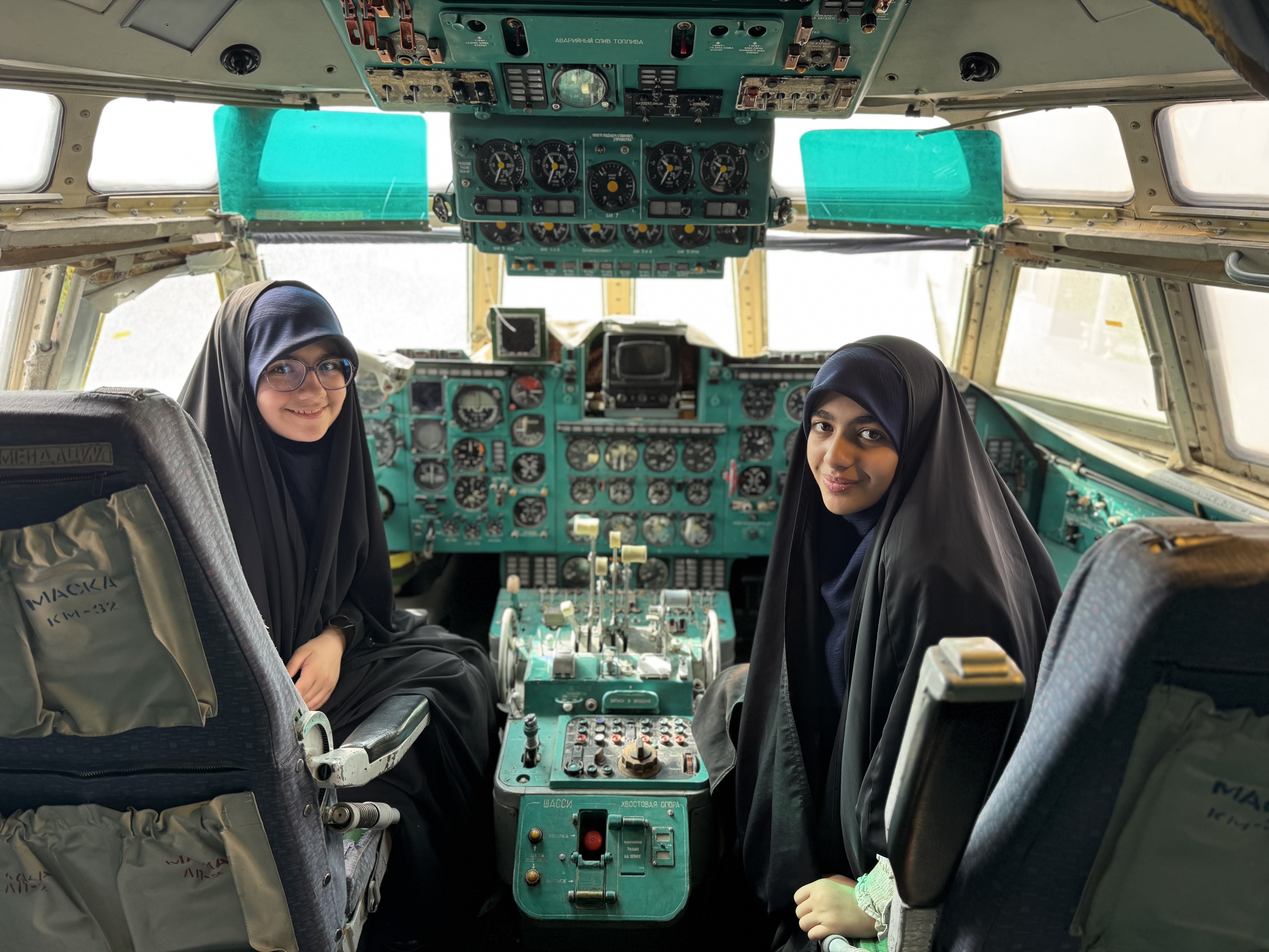 از هیجانانگیزترین لحظات این سفر، ورود به کابین خلبان بود؛ جایی که دختران با شور و اشتیاق پشت فرمان نشستند و طعم واقعی پرواز را چشیدند!