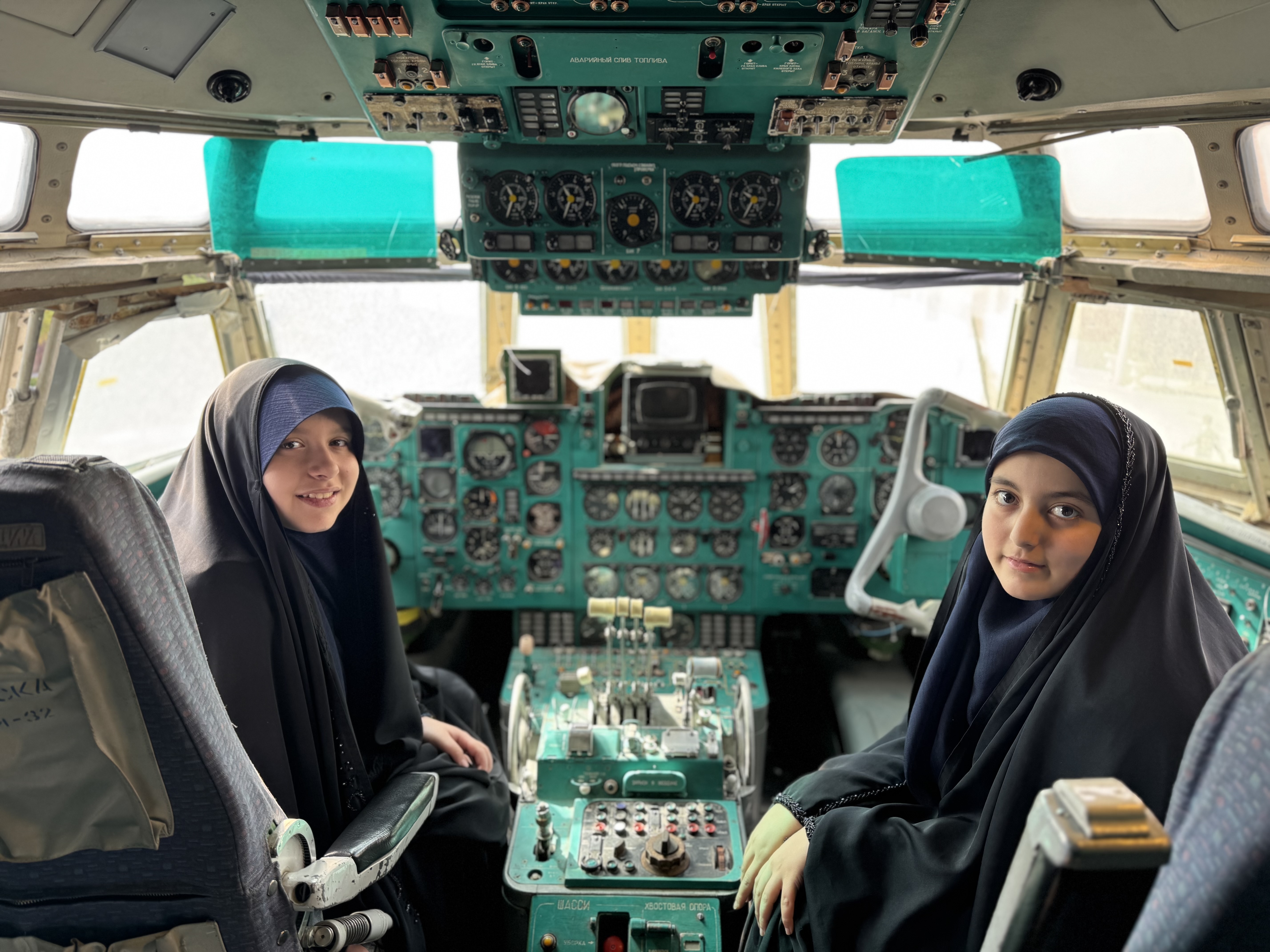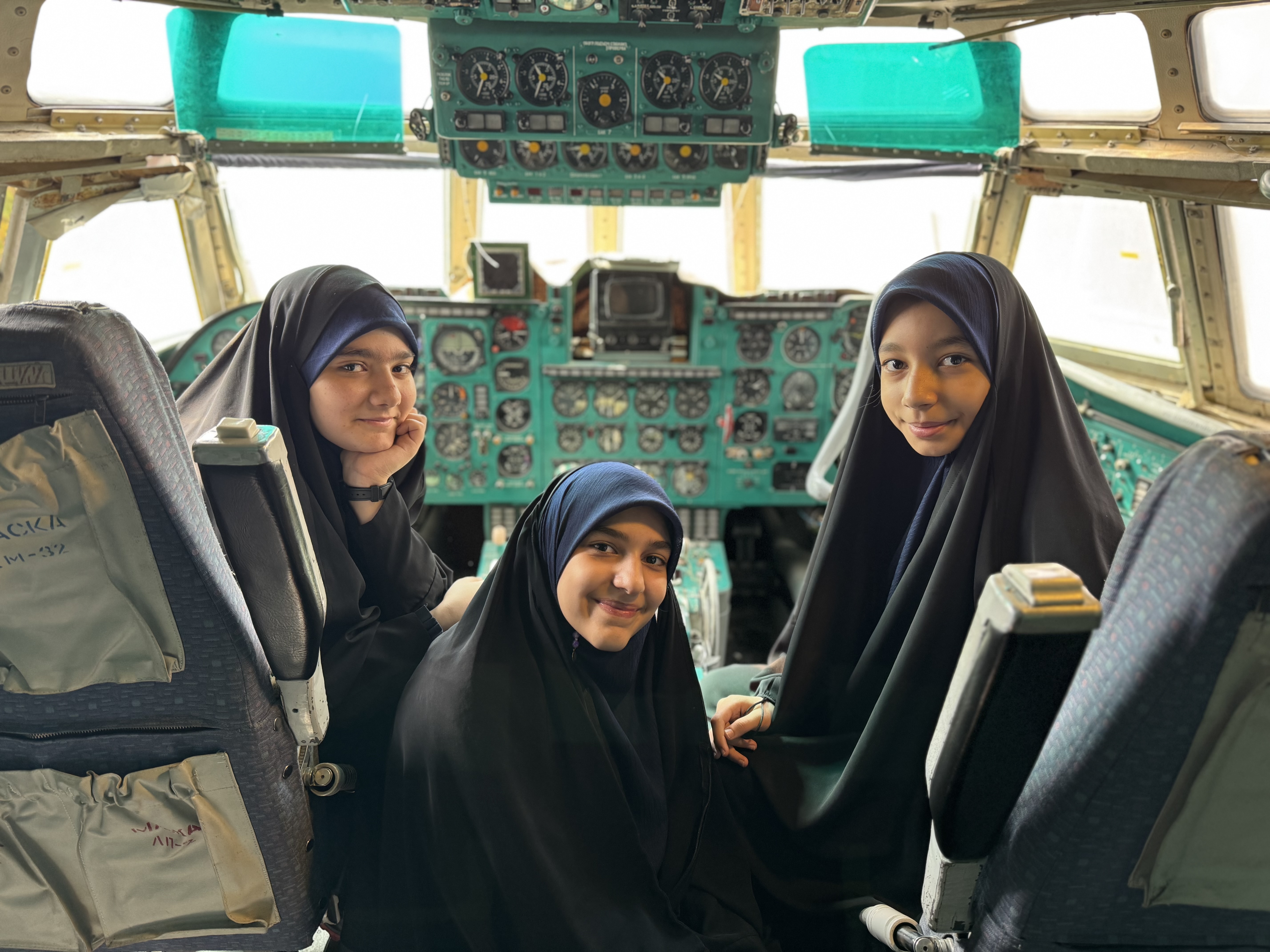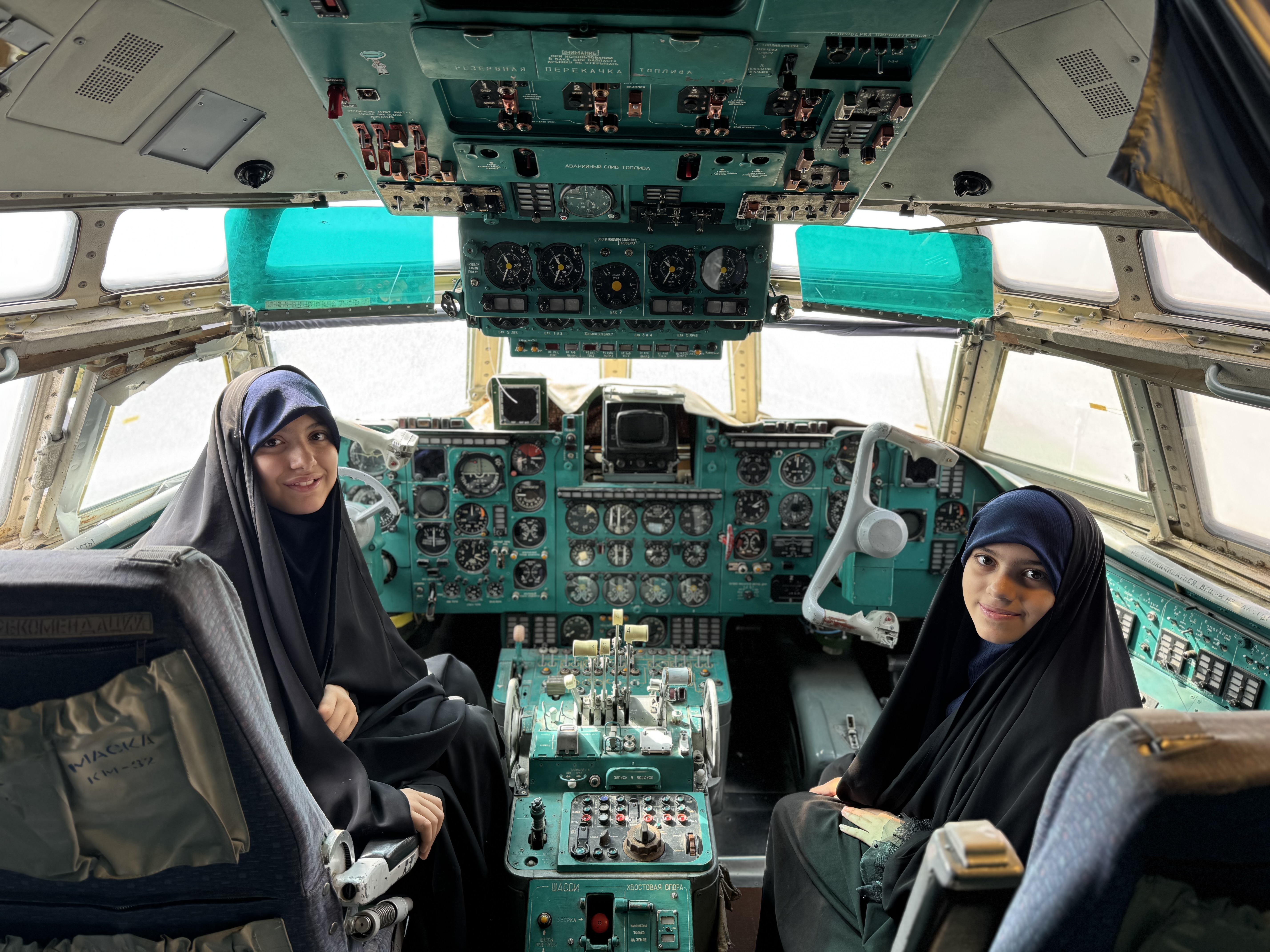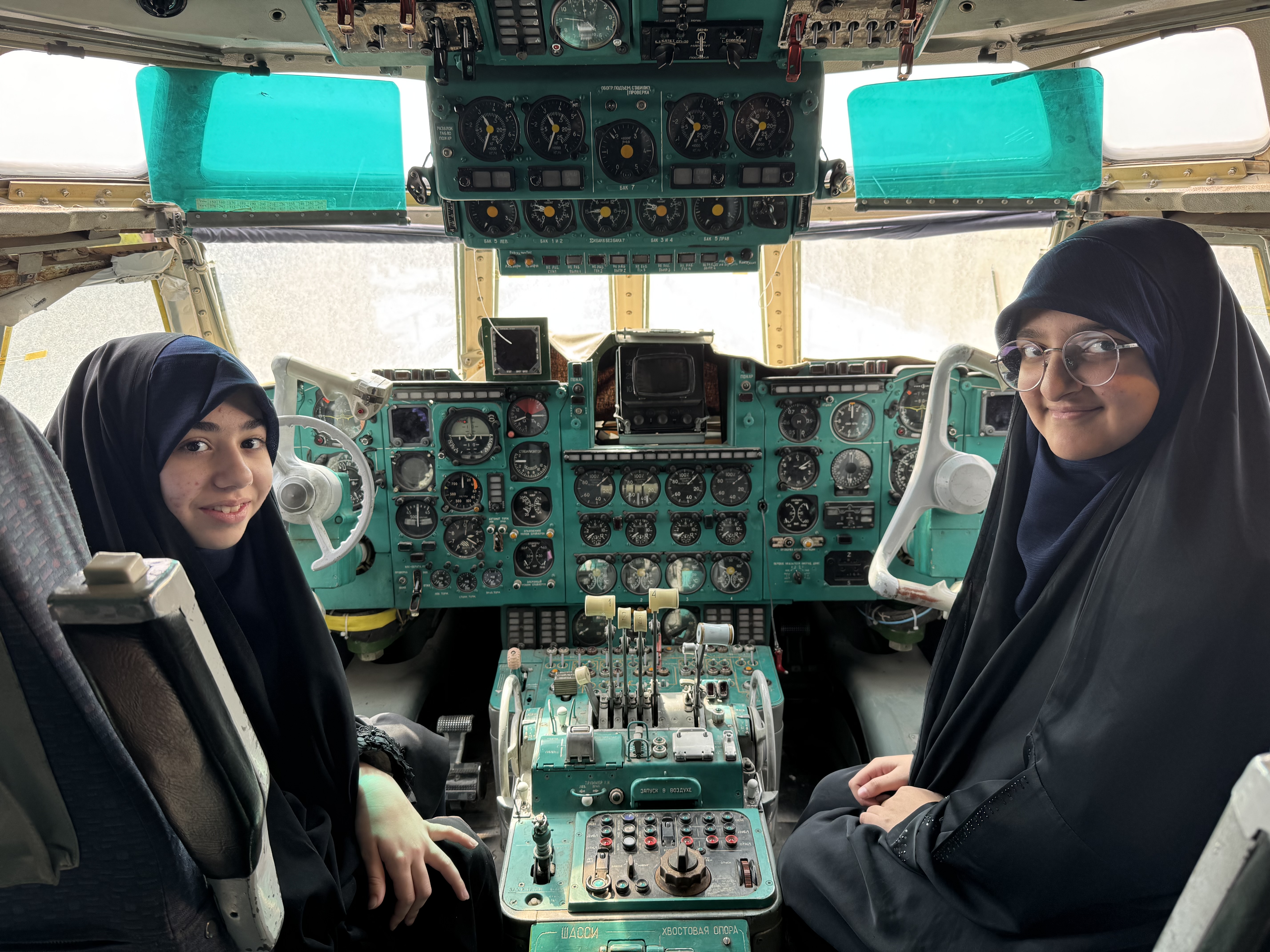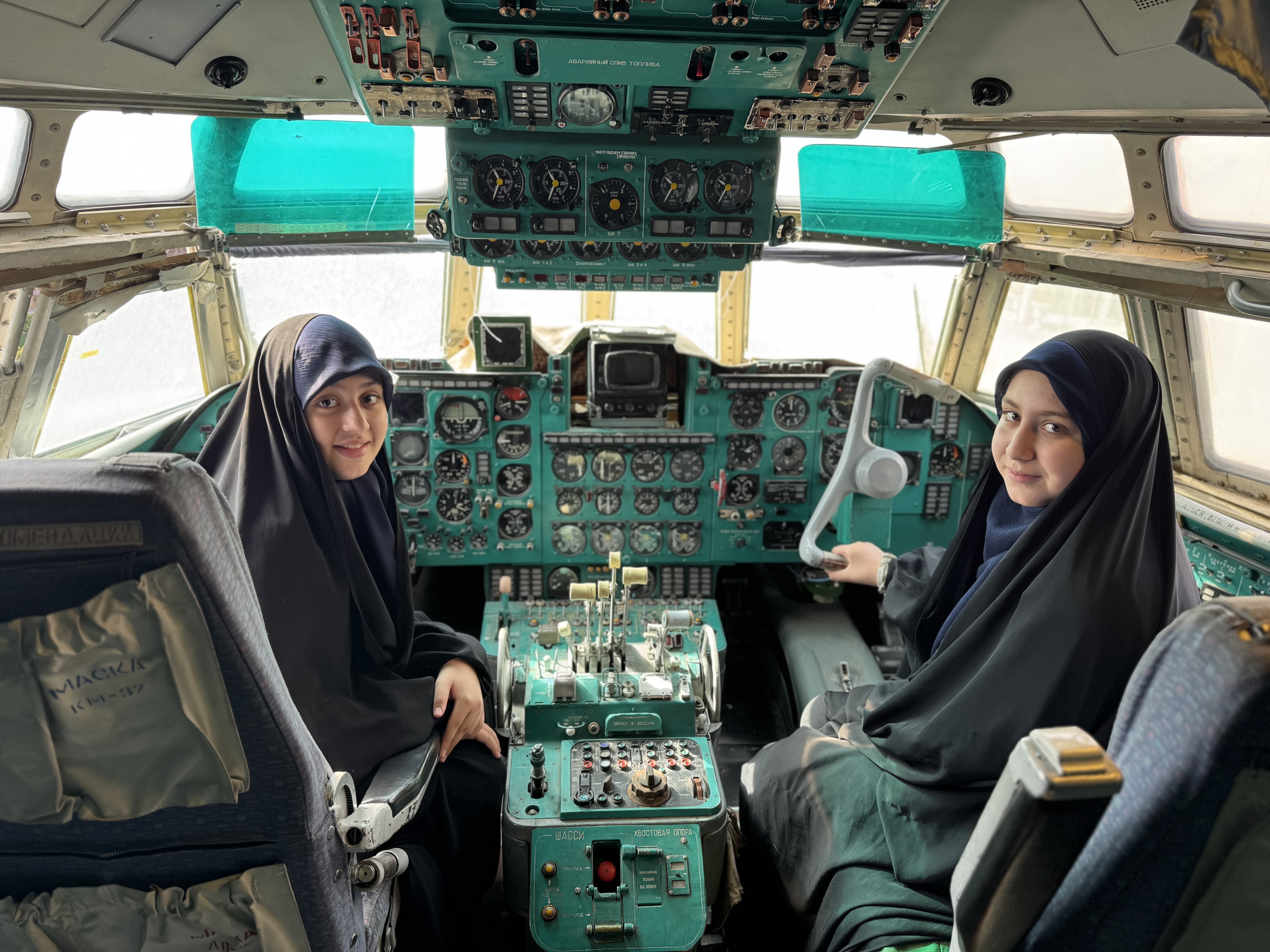 از هیجانانگیزترین لحظات این سفر، ورود به کابین خلبان بود؛ جایی که دختران با شور و اشتیاق پشت فرمان نشستند و طعم واقعی پرواز را چشیدند!