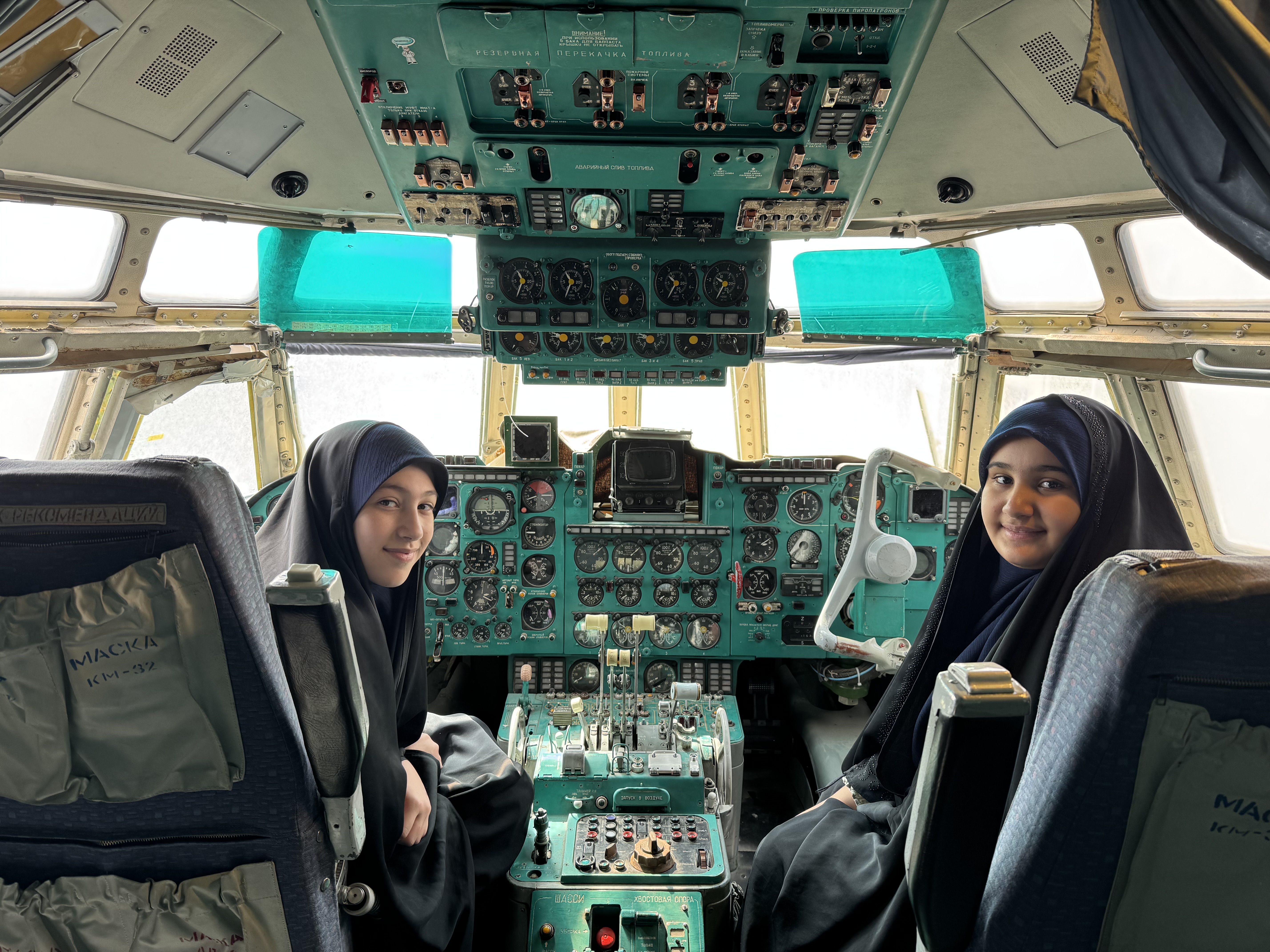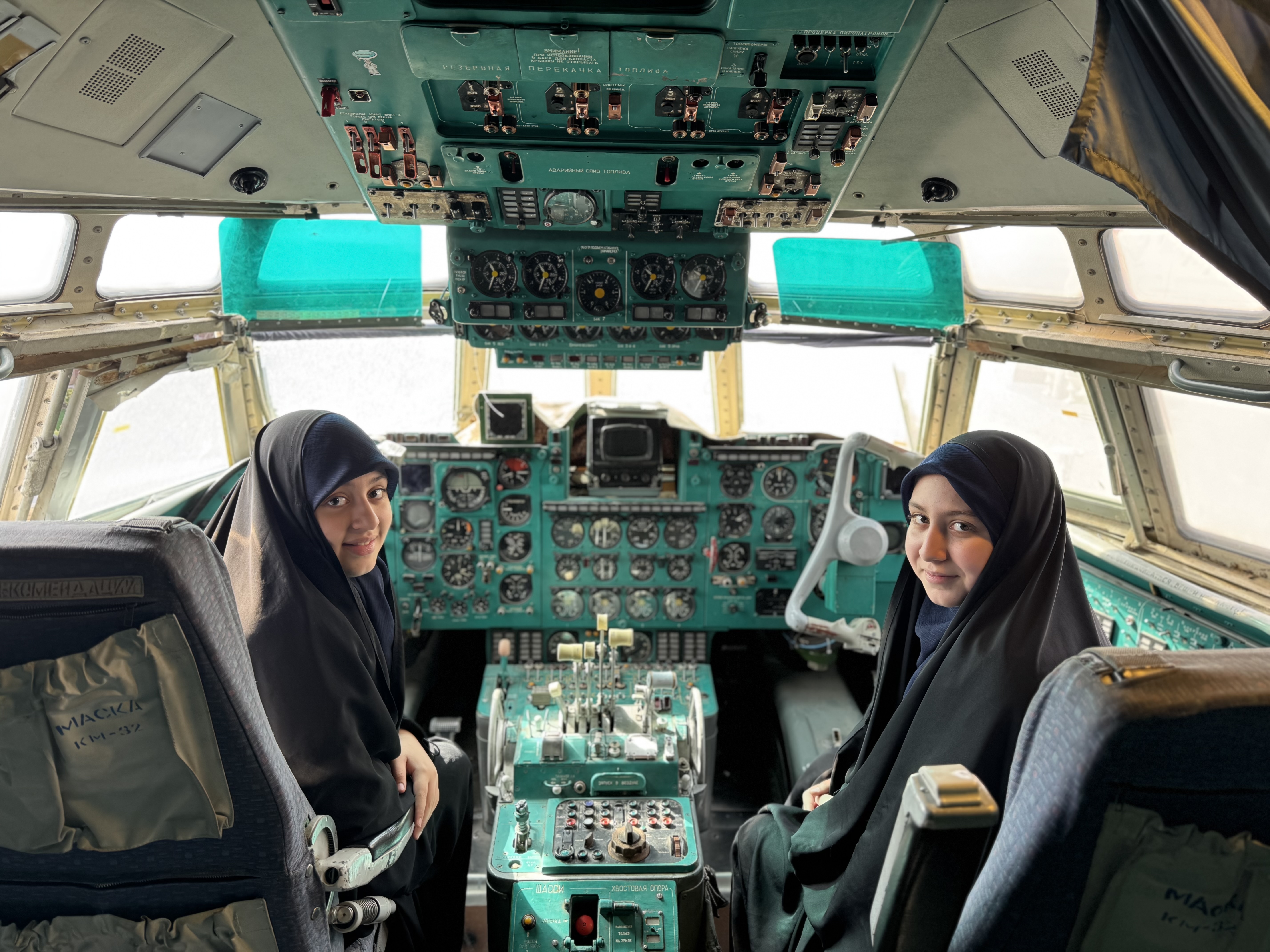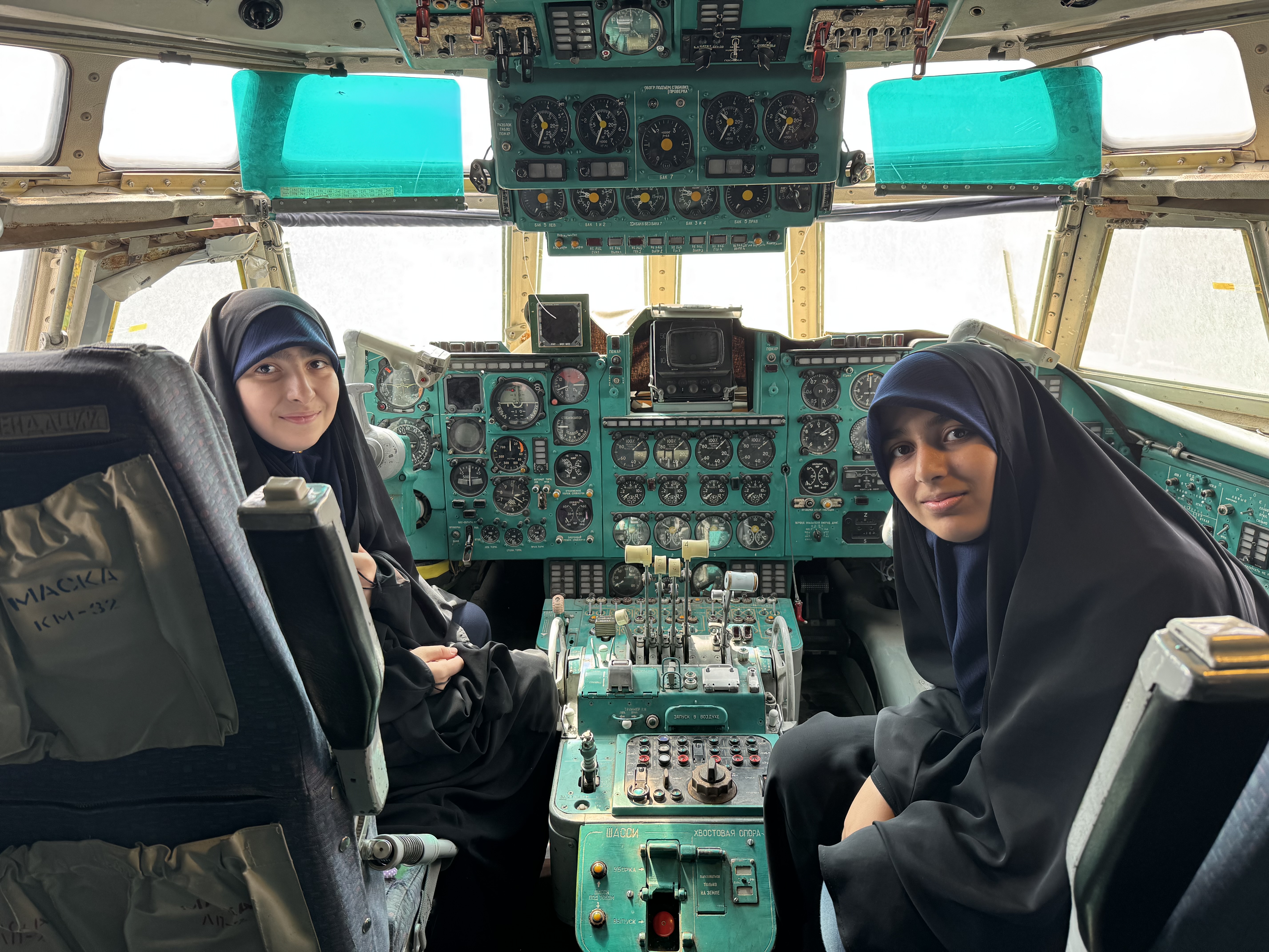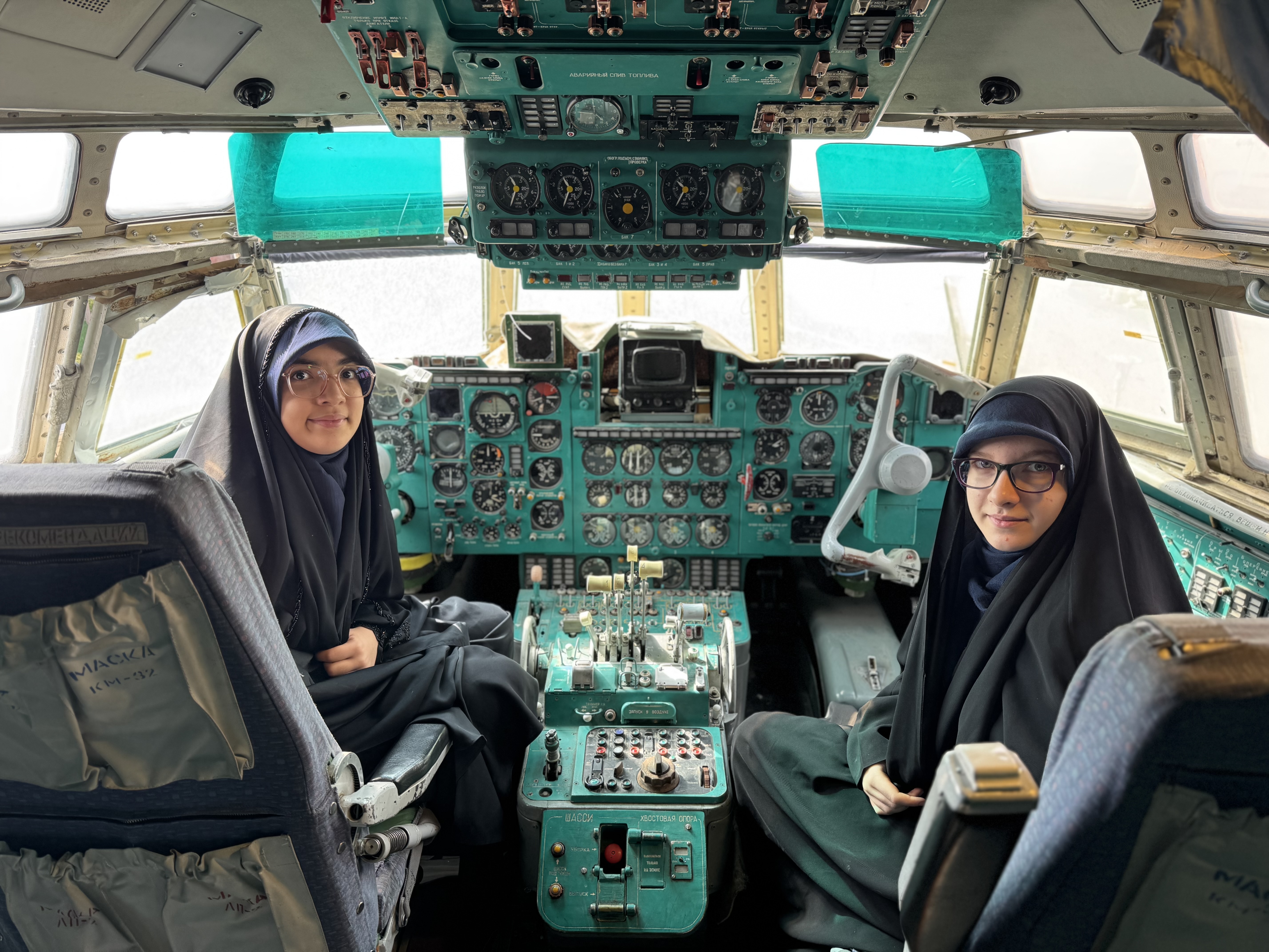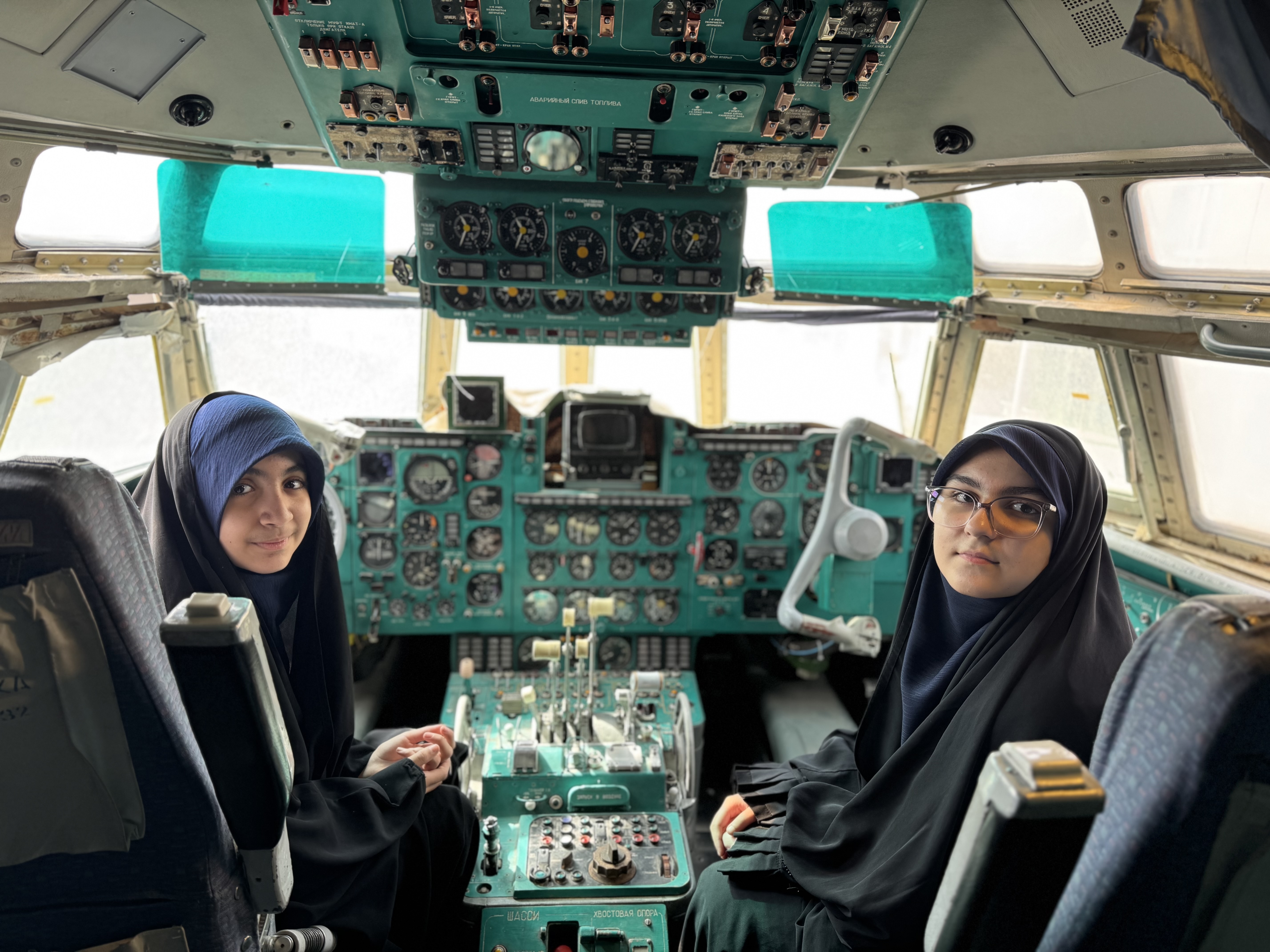 از هیجانانگیزترین لحظات این سفر، ورود به کابین خلبان بود؛ جایی که دختران با شور و اشتیاق پشت فرمان نشستند و طعم واقعی پرواز را چشیدند!