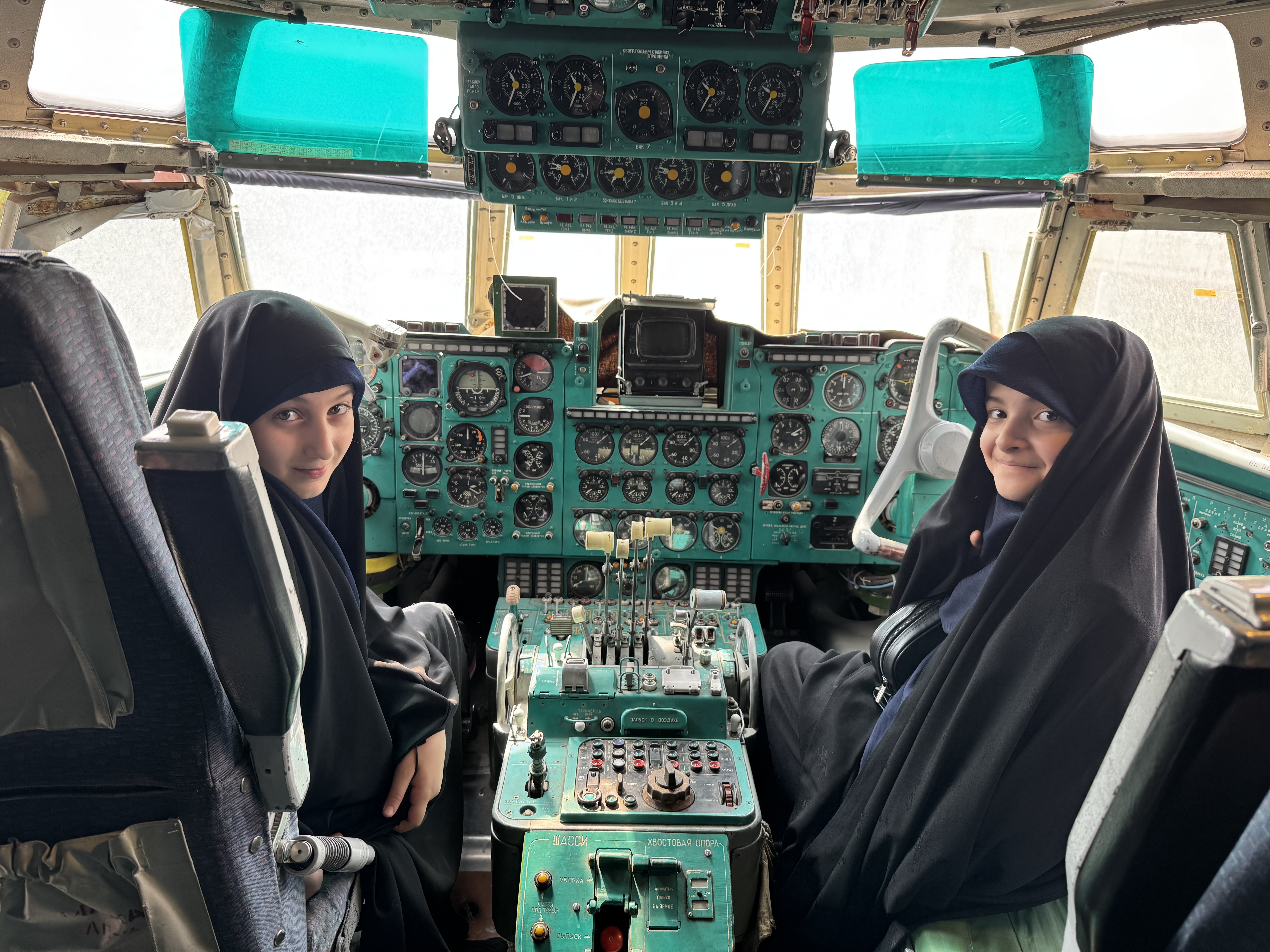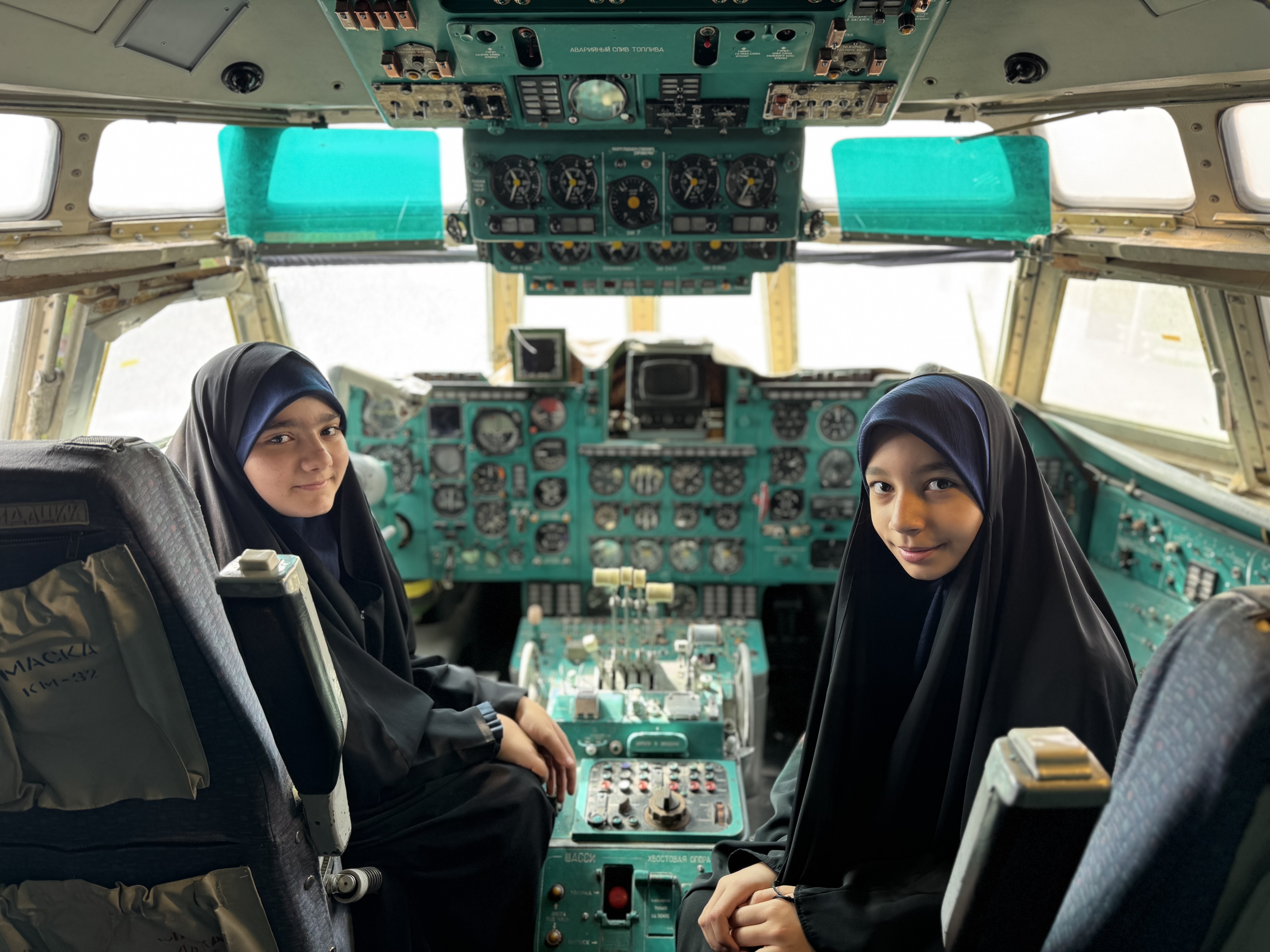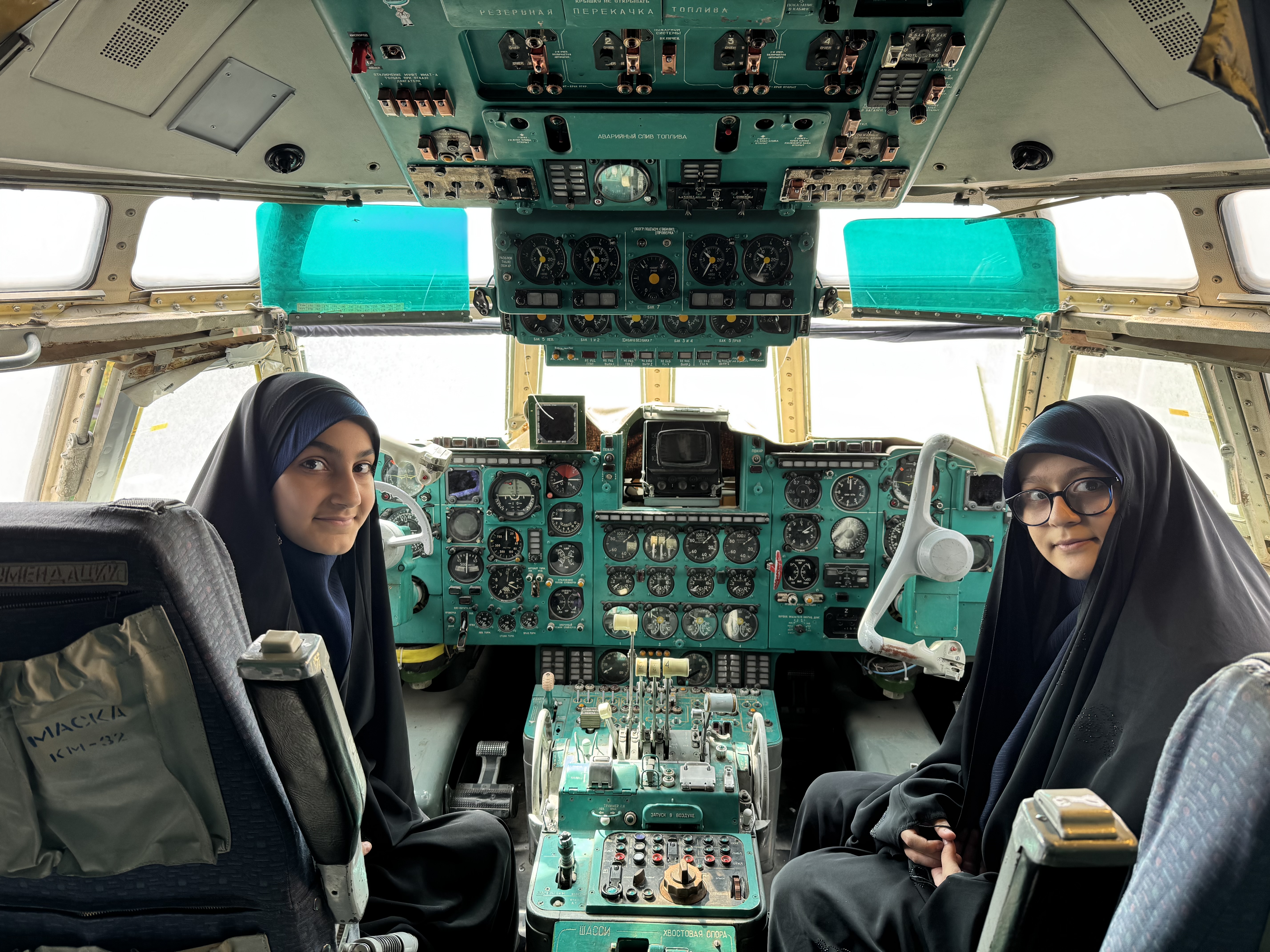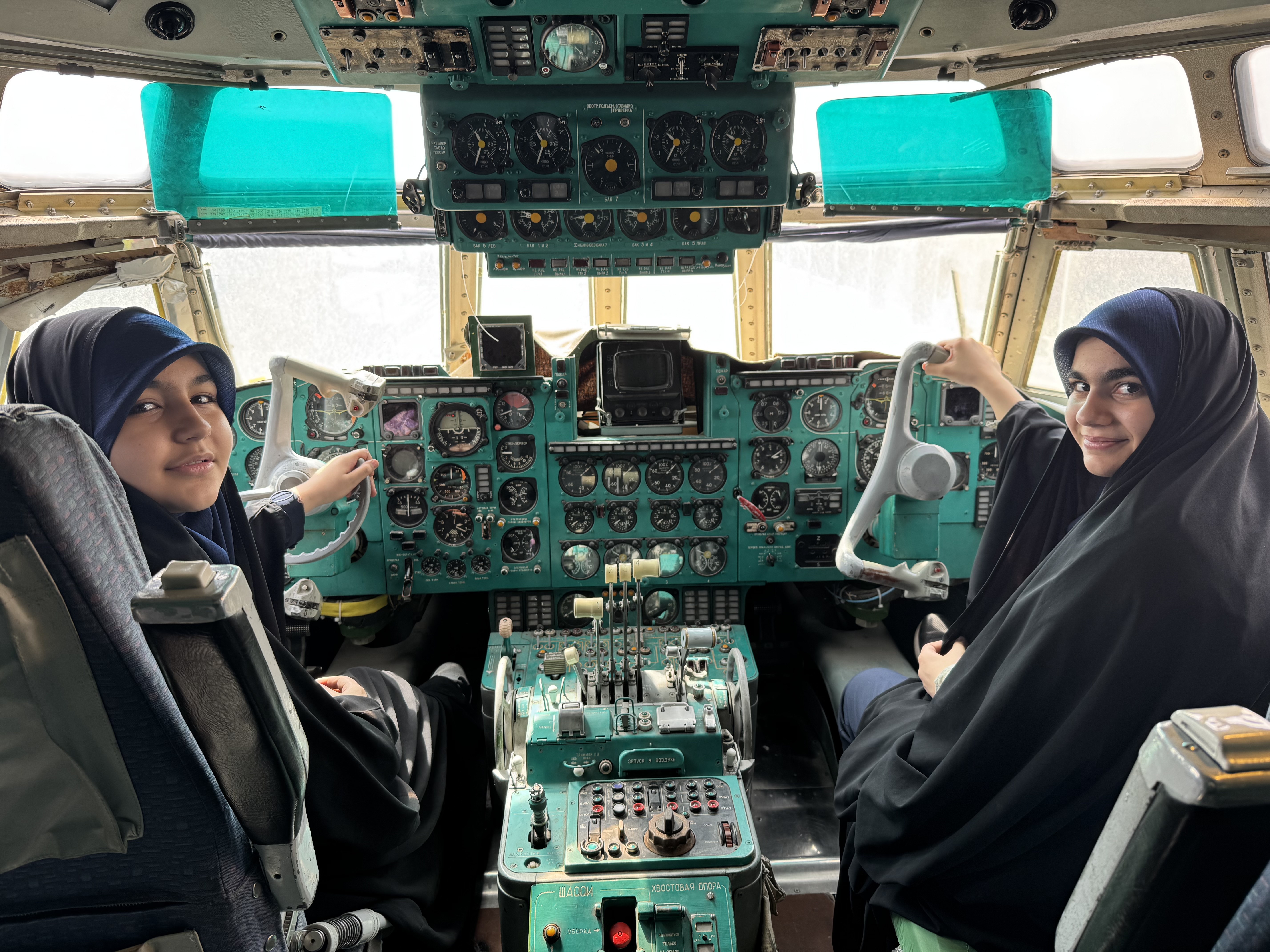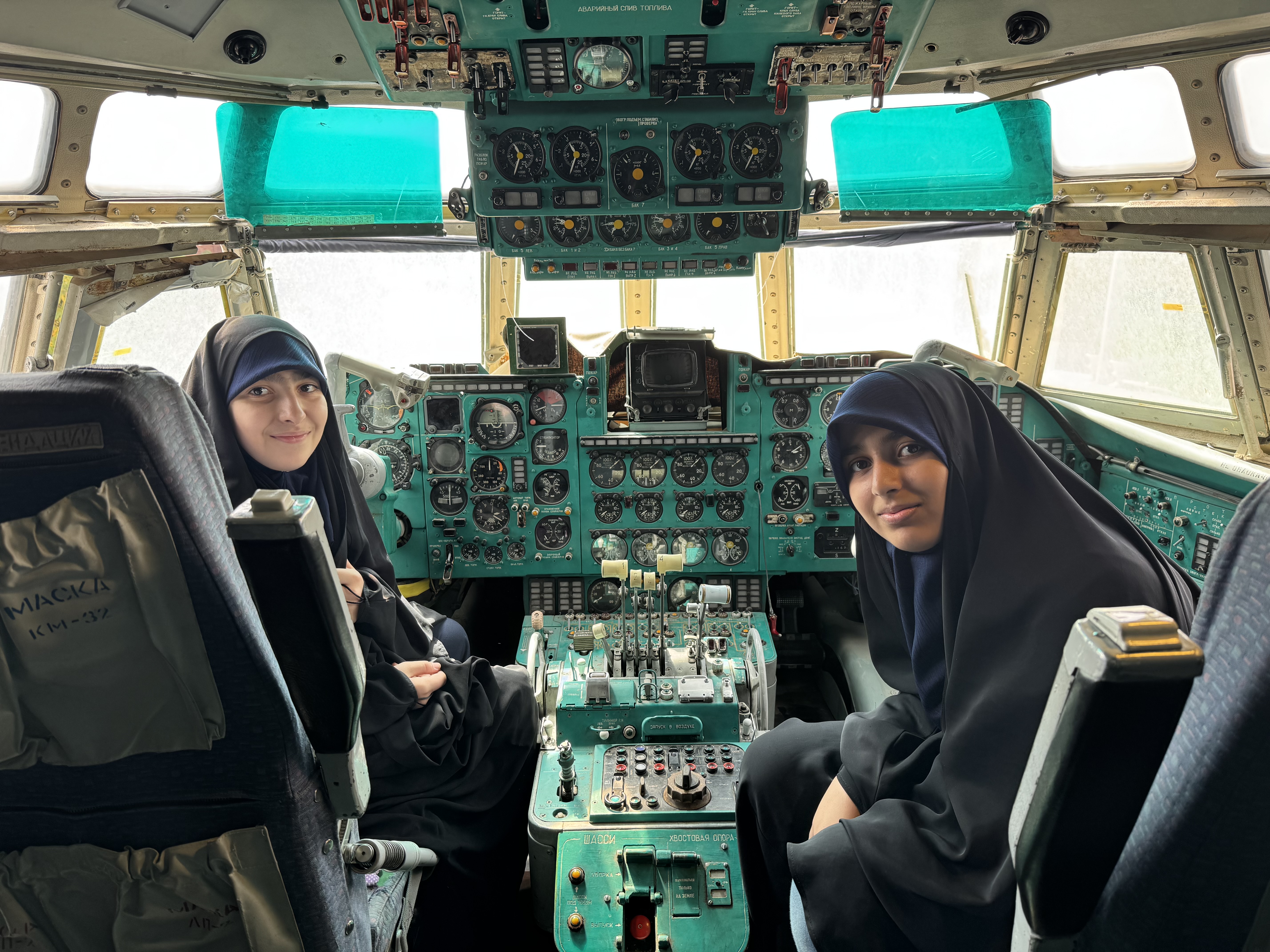 از هیجانانگیزترین لحظات این سفر، ورود به کابین خلبان بود؛ جایی که دختران با شور و اشتیاق پشت فرمان نشستند و طعم واقعی پرواز را چشیدند!
