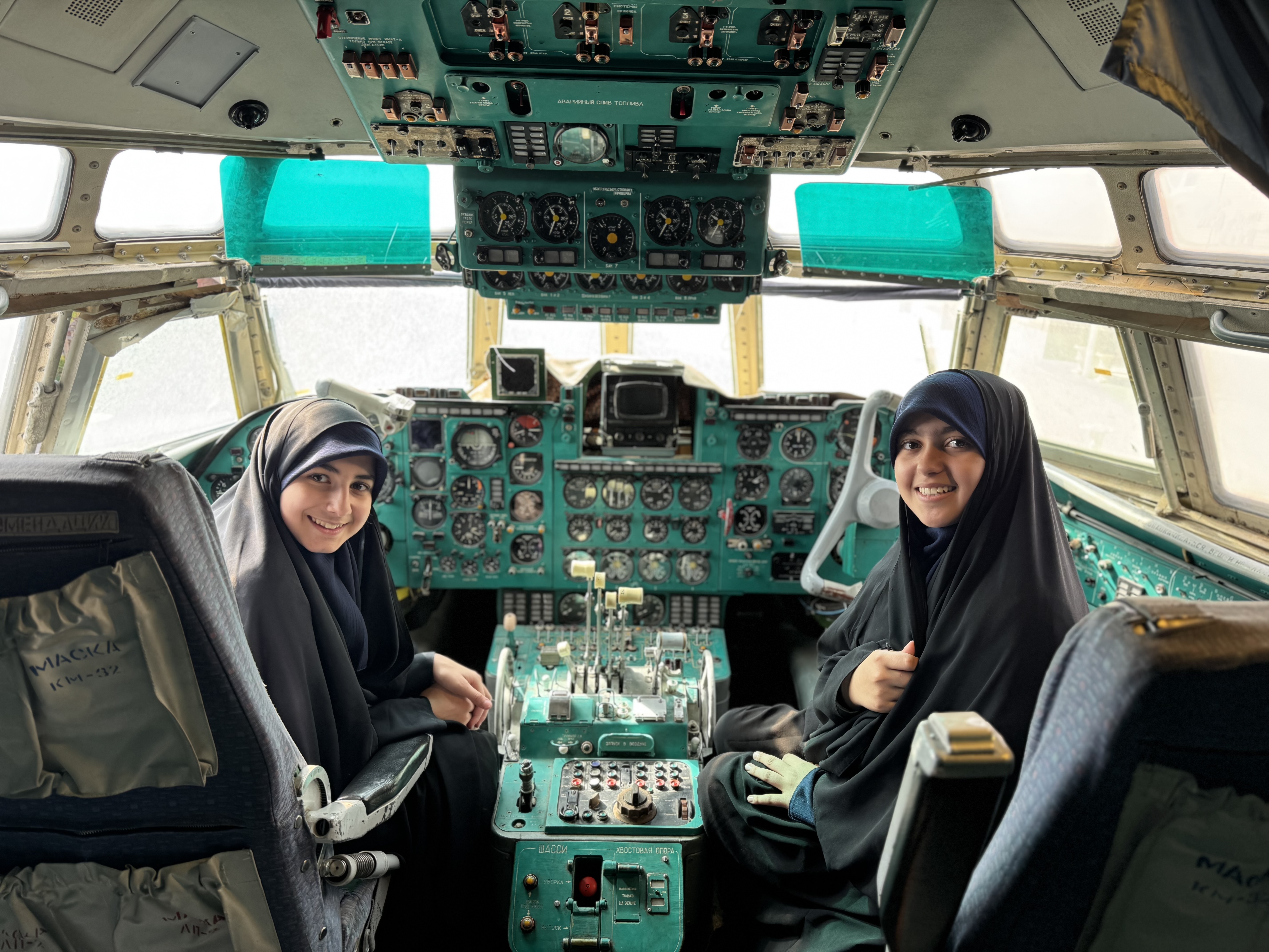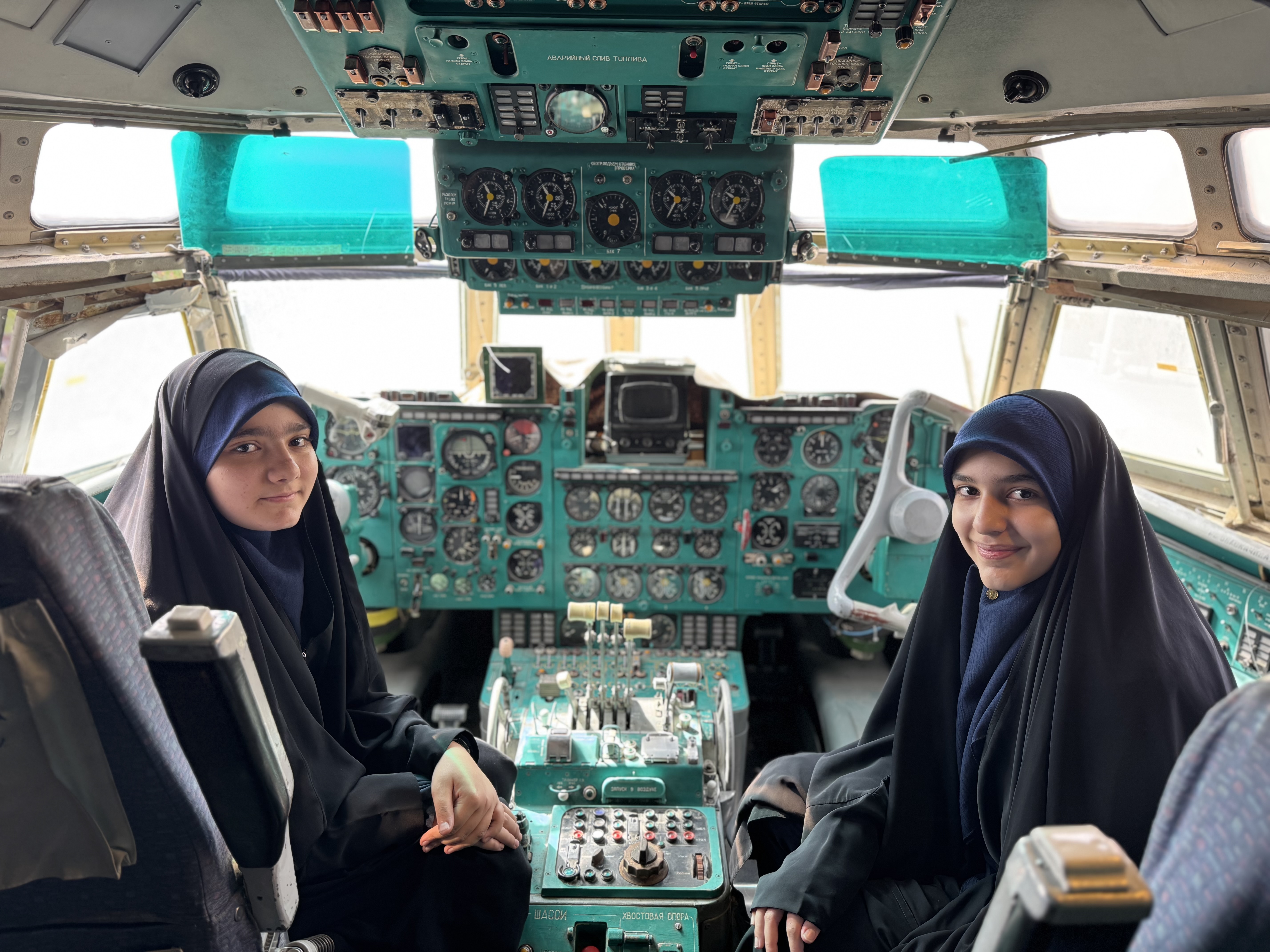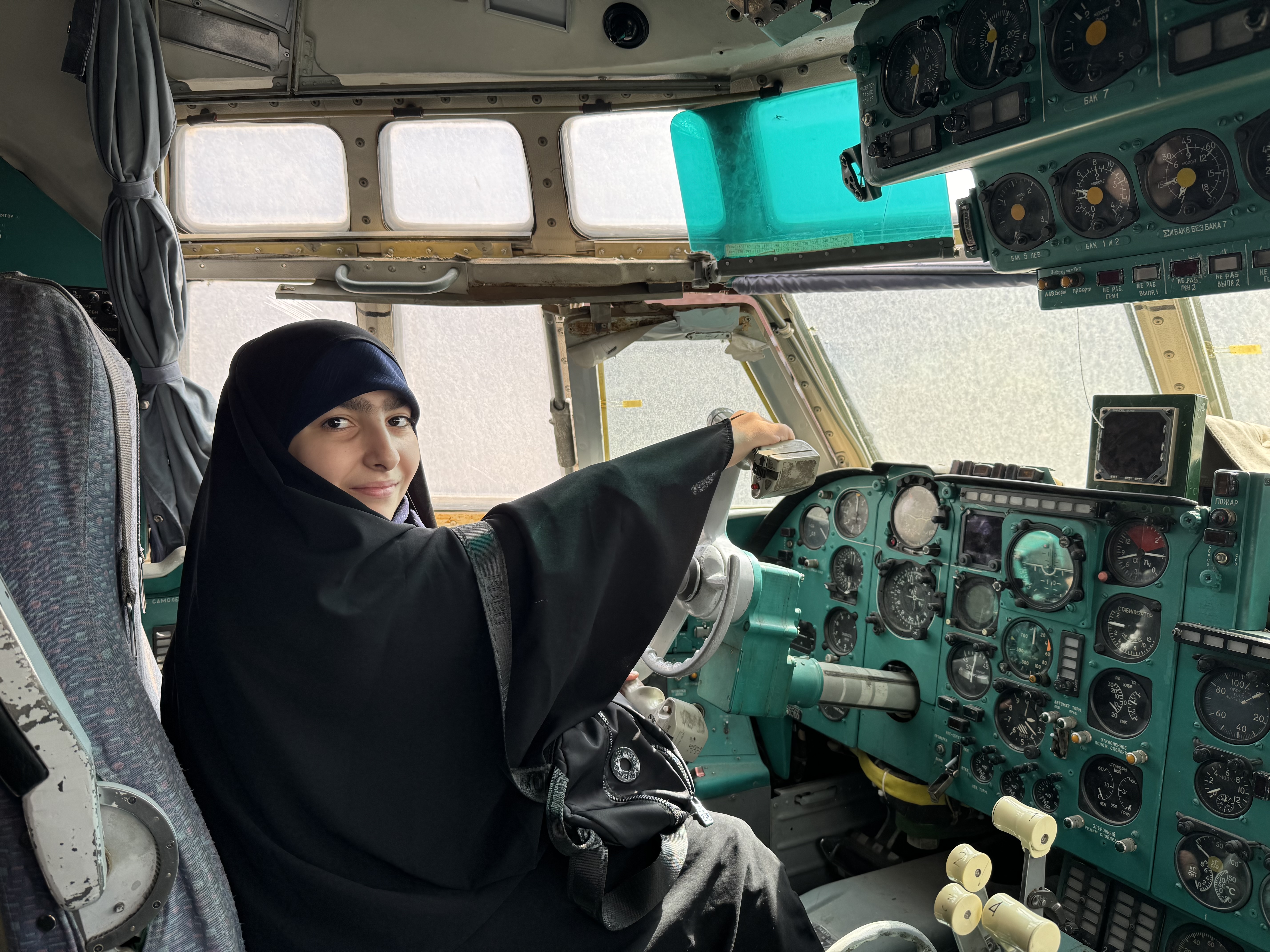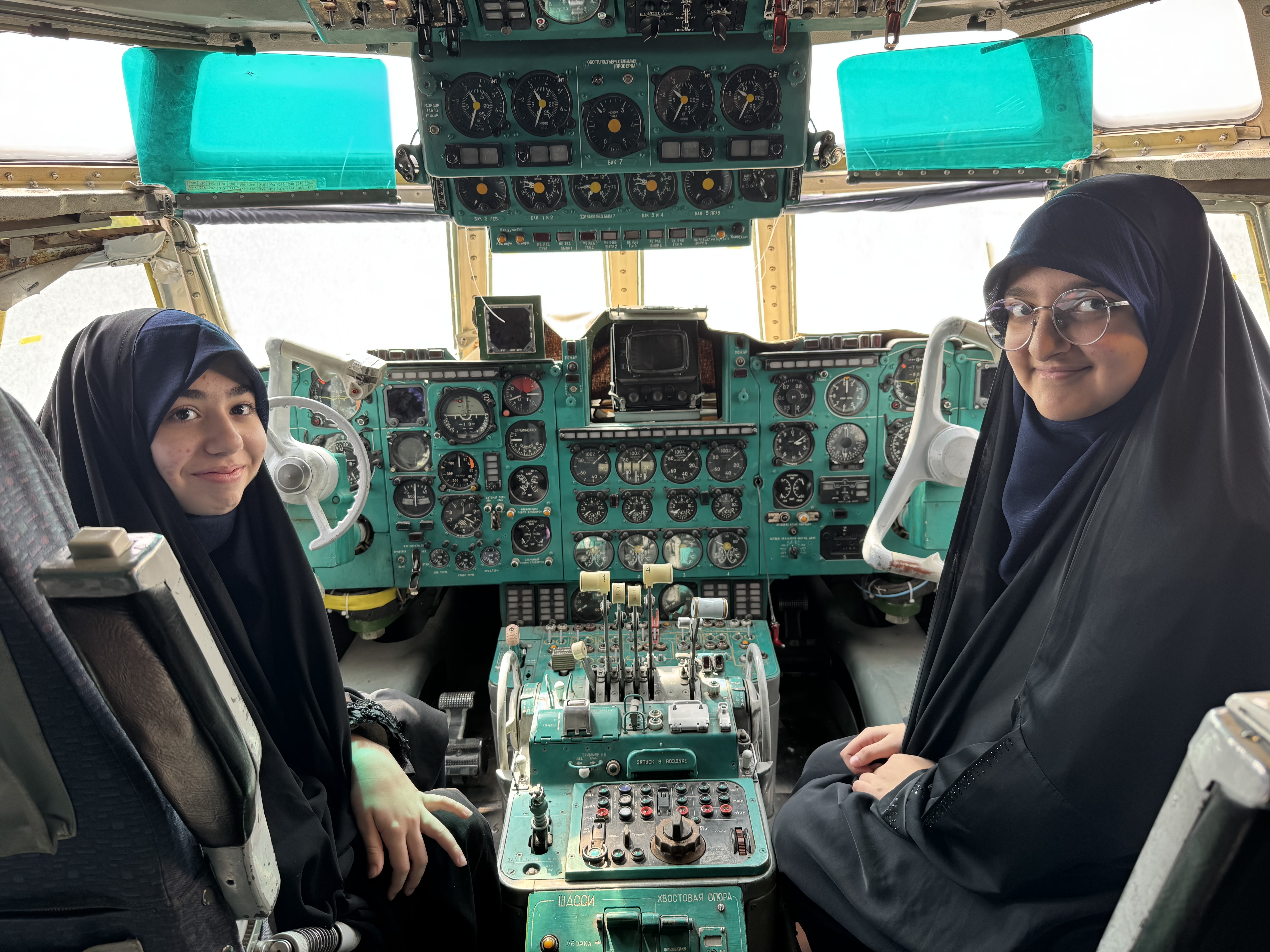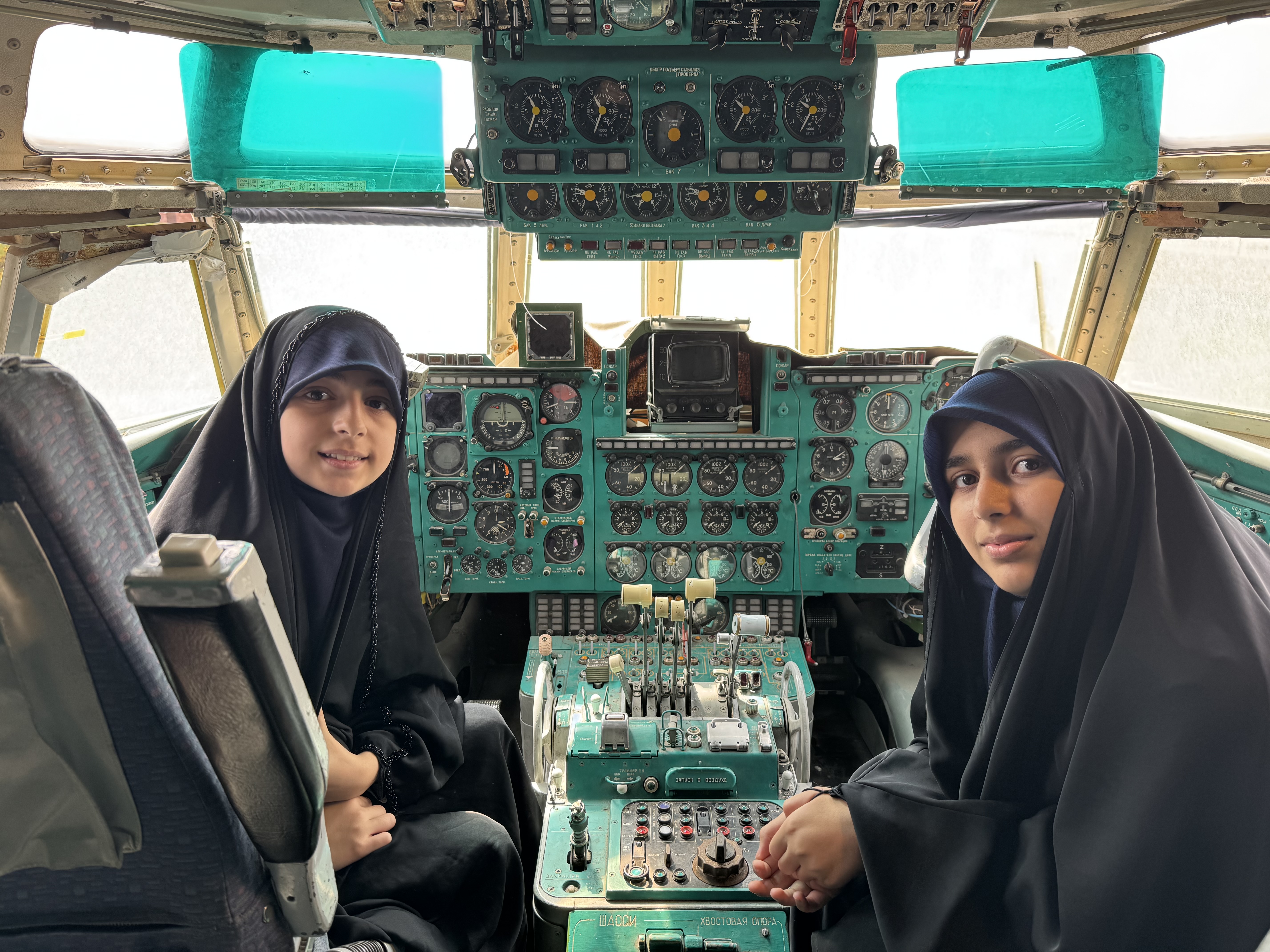 از هیجانانگیزترین لحظات این سفر، ورود به کابین خلبان بود؛ جایی که دختران با شور و اشتیاق پشت فرمان نشستند و طعم واقعی پرواز را چشیدند!