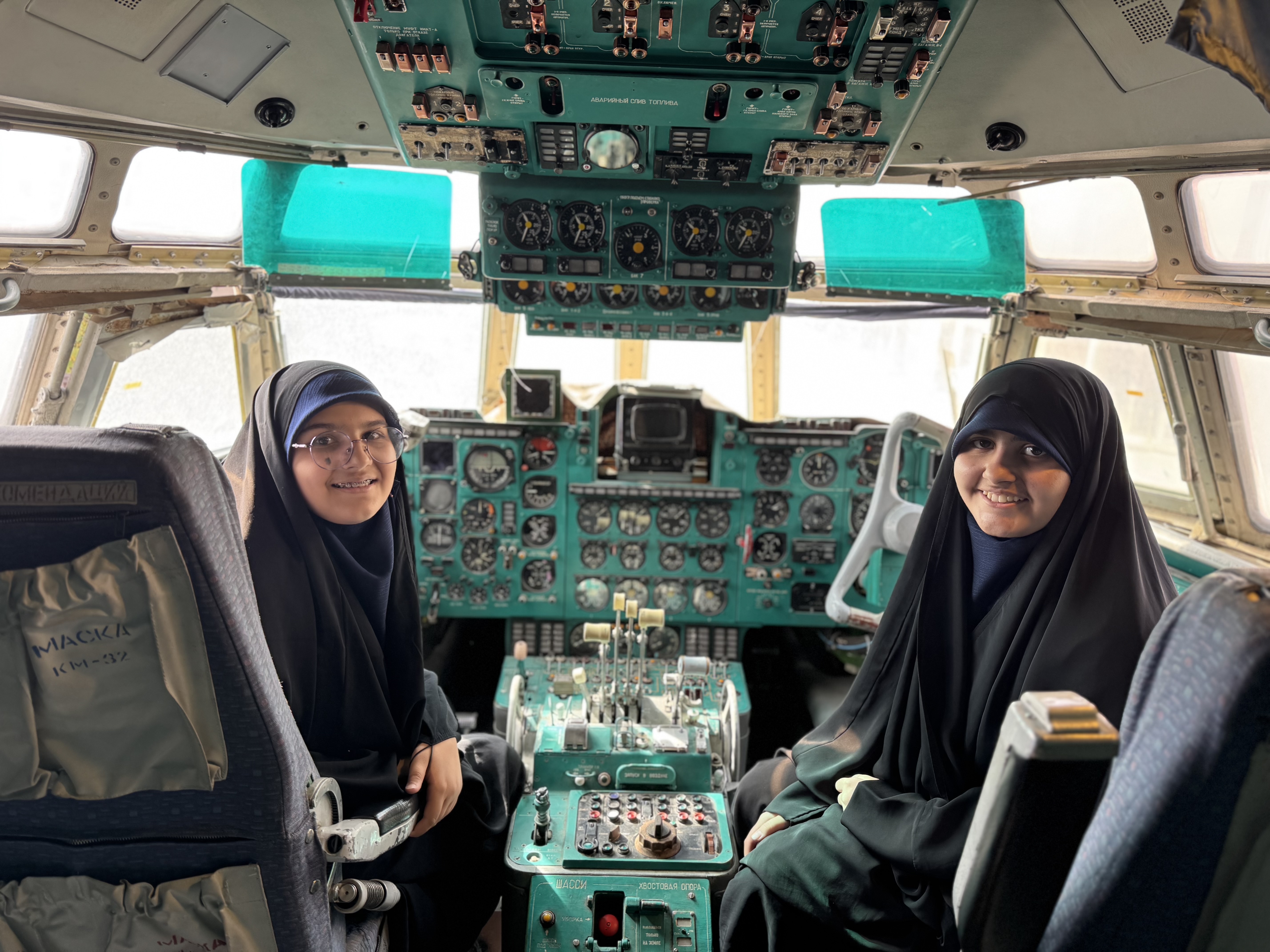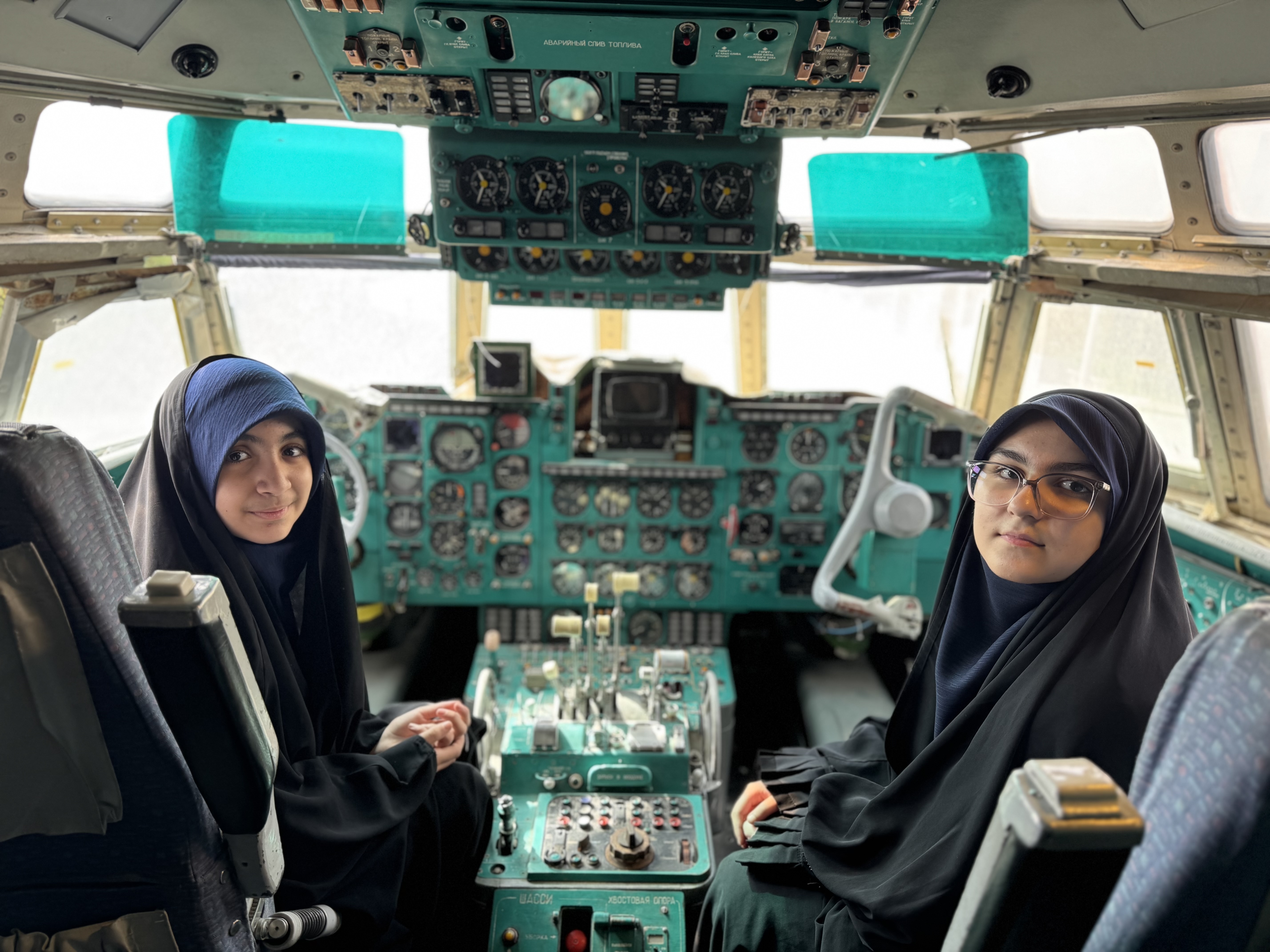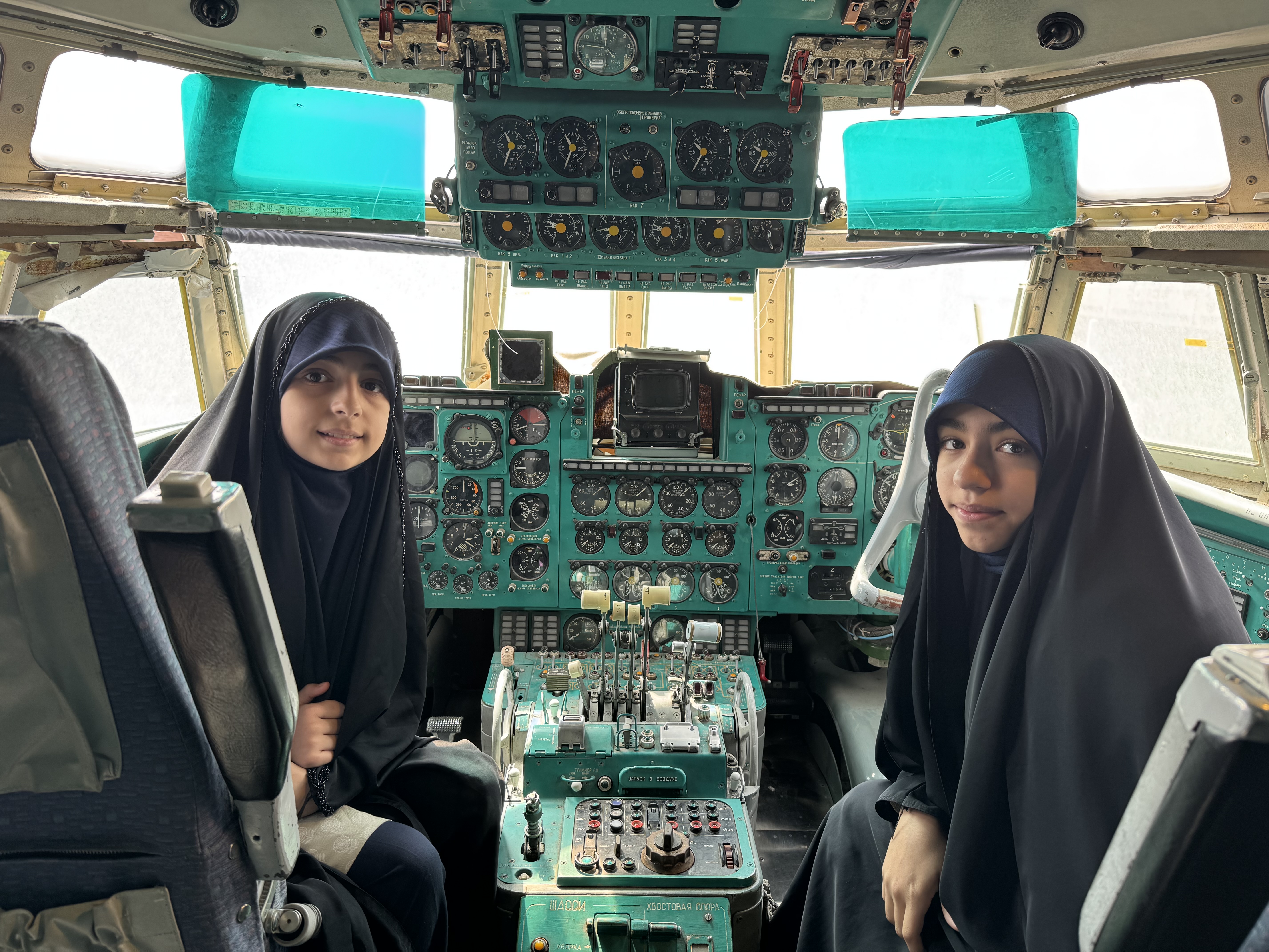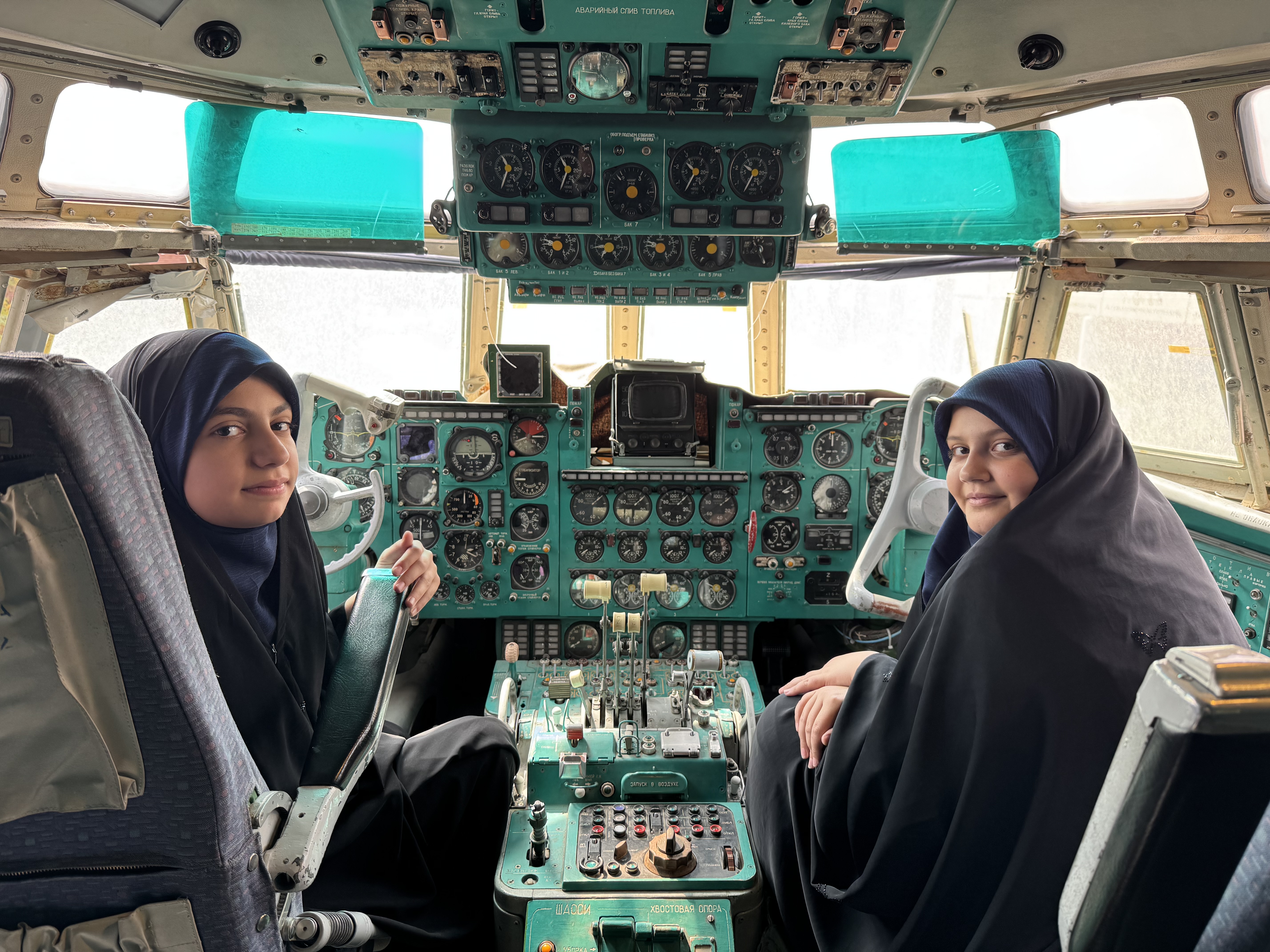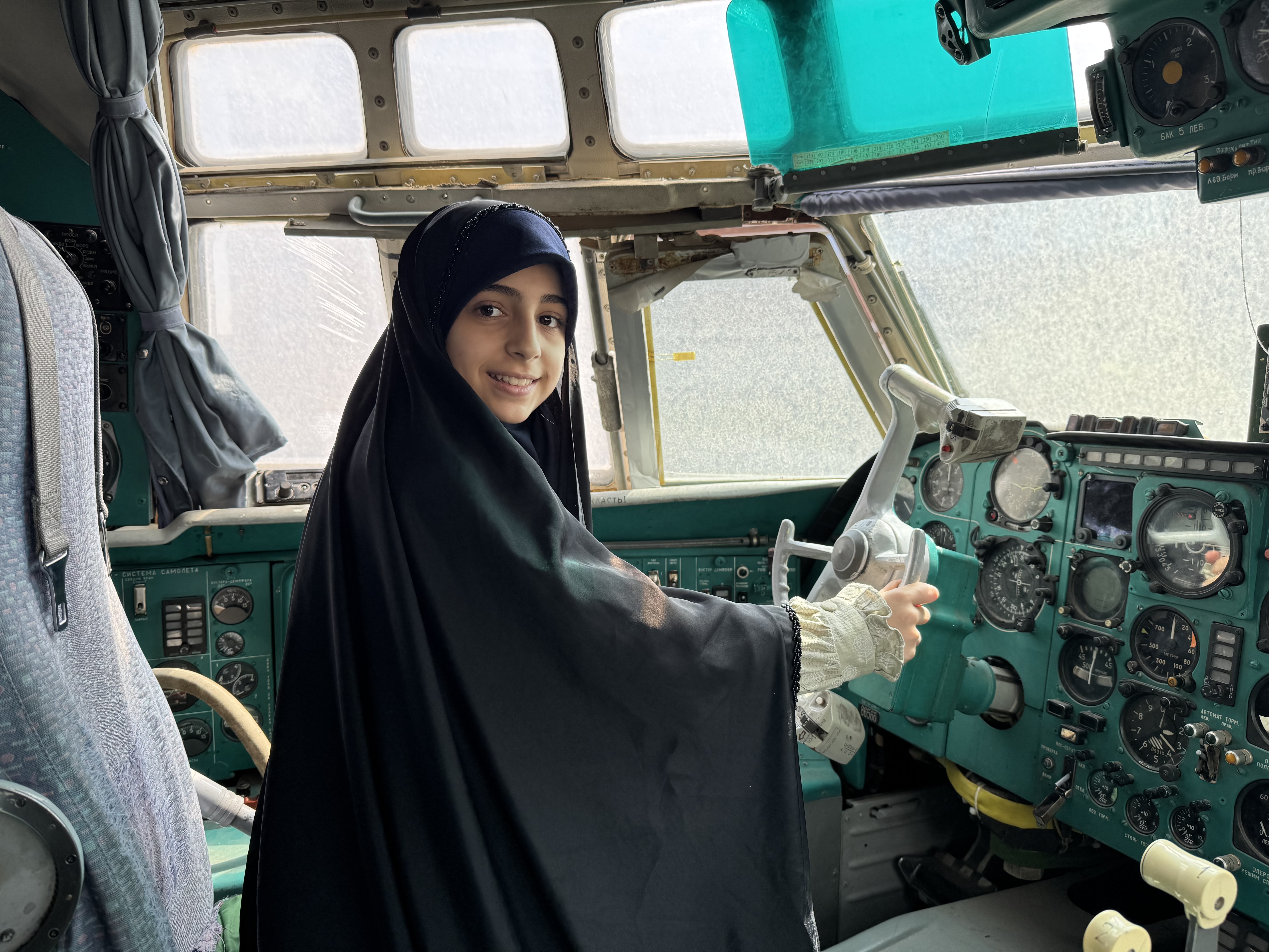 از هیجانانگیزترین لحظات این سفر، ورود به کابین خلبان بود؛ جایی که دختران با شور و اشتیاق پشت فرمان نشستند و طعم واقعی پرواز را چشیدند!