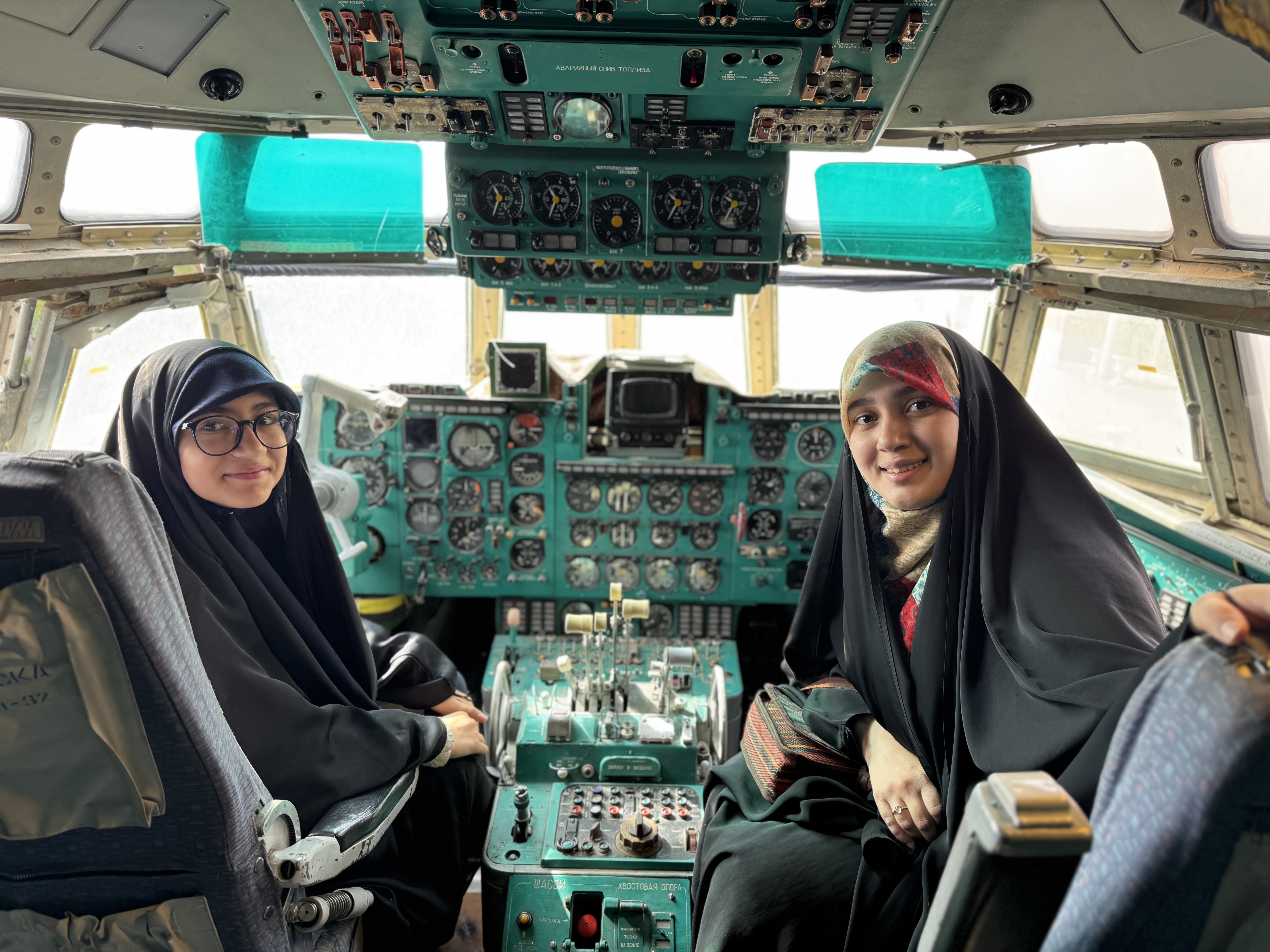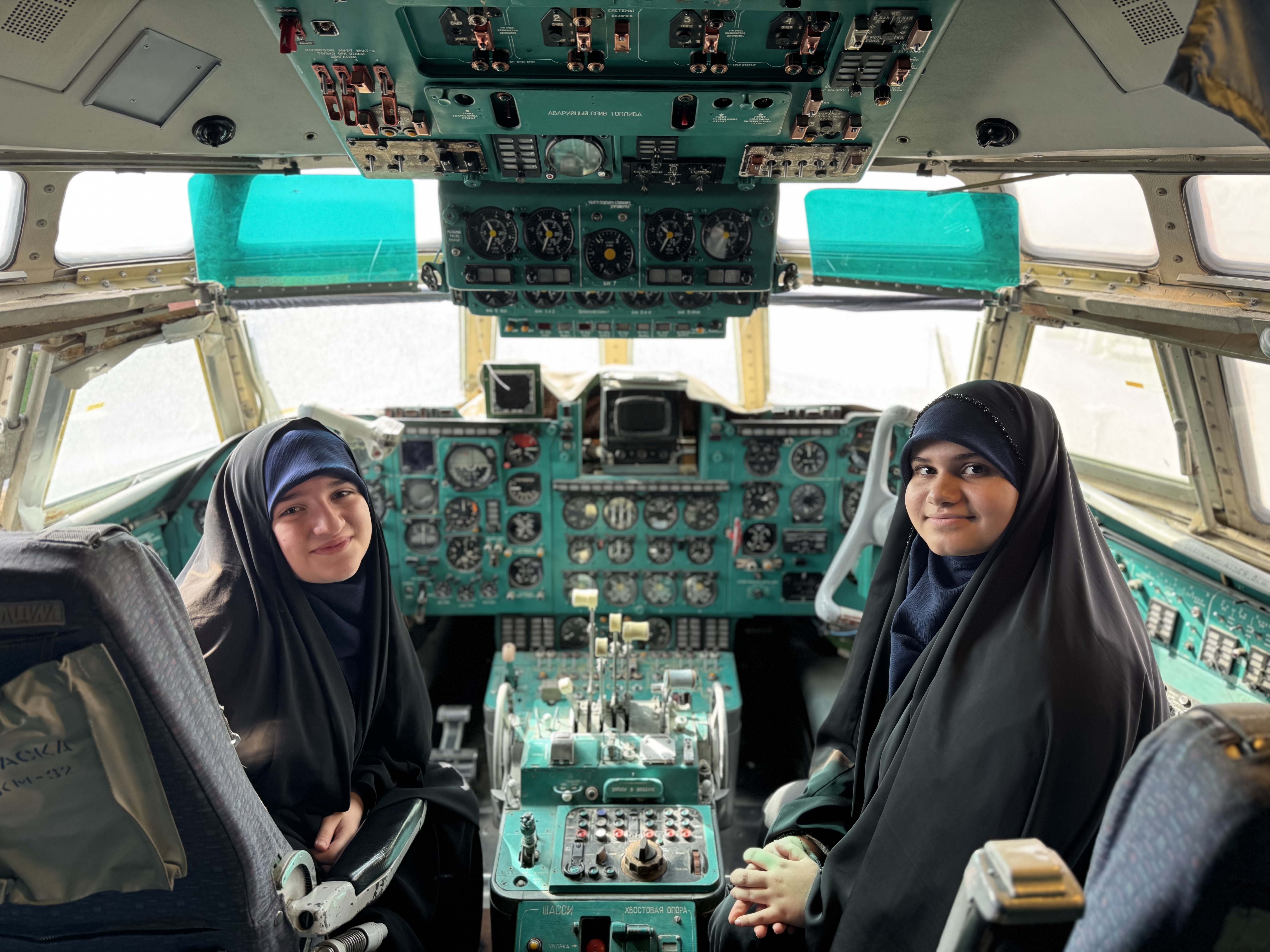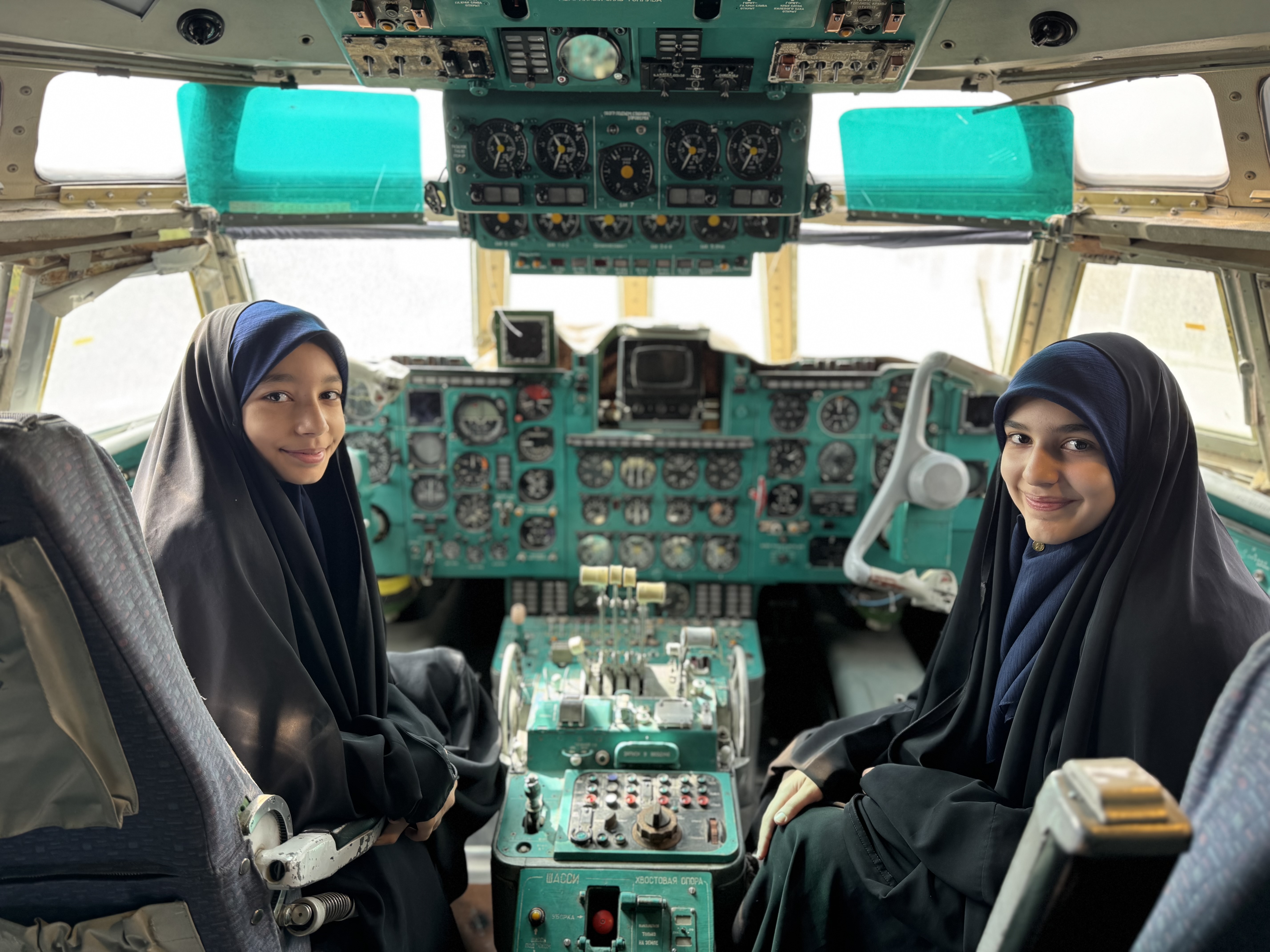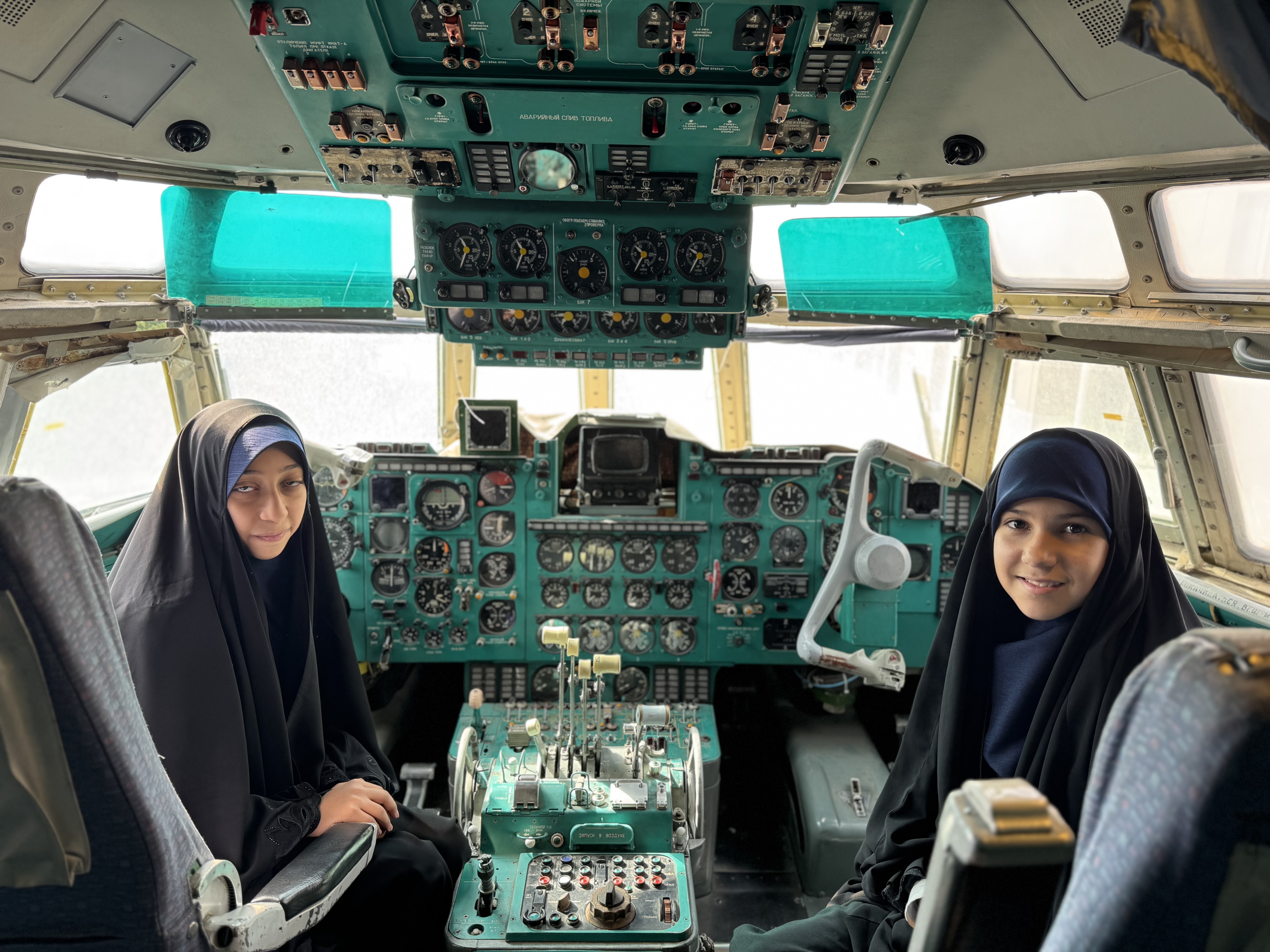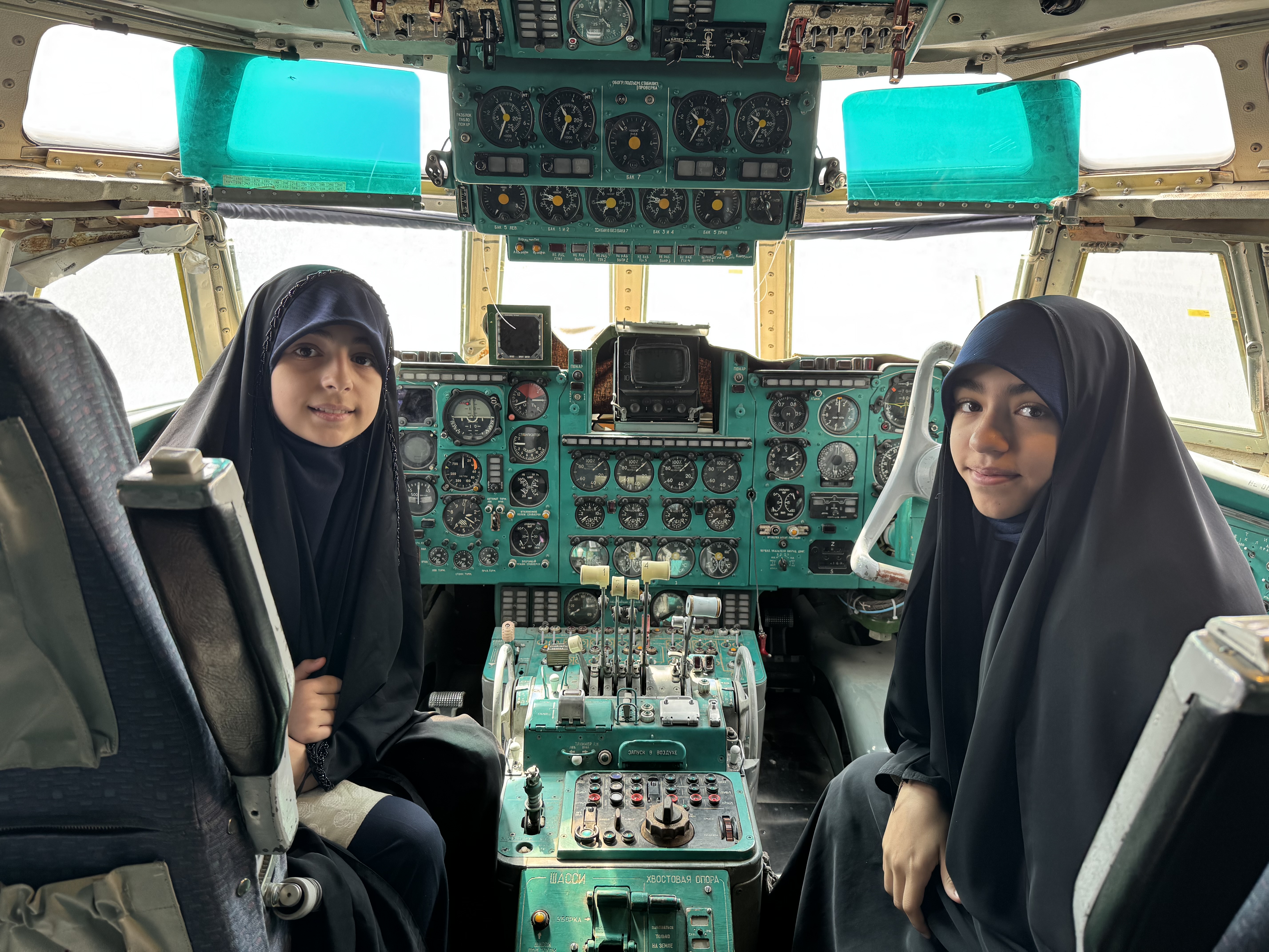 از هیجانانگیزترین لحظات این سفر، ورود به کابین خلبان بود؛ جایی که دختران با شور و اشتیاق پشت فرمان نشستند و طعم واقعی پرواز را چشیدند!