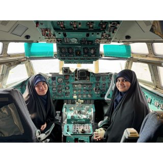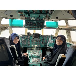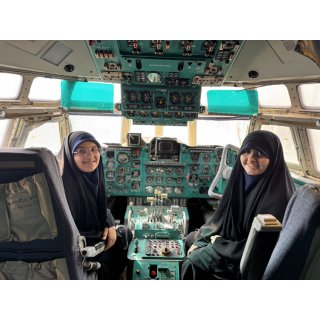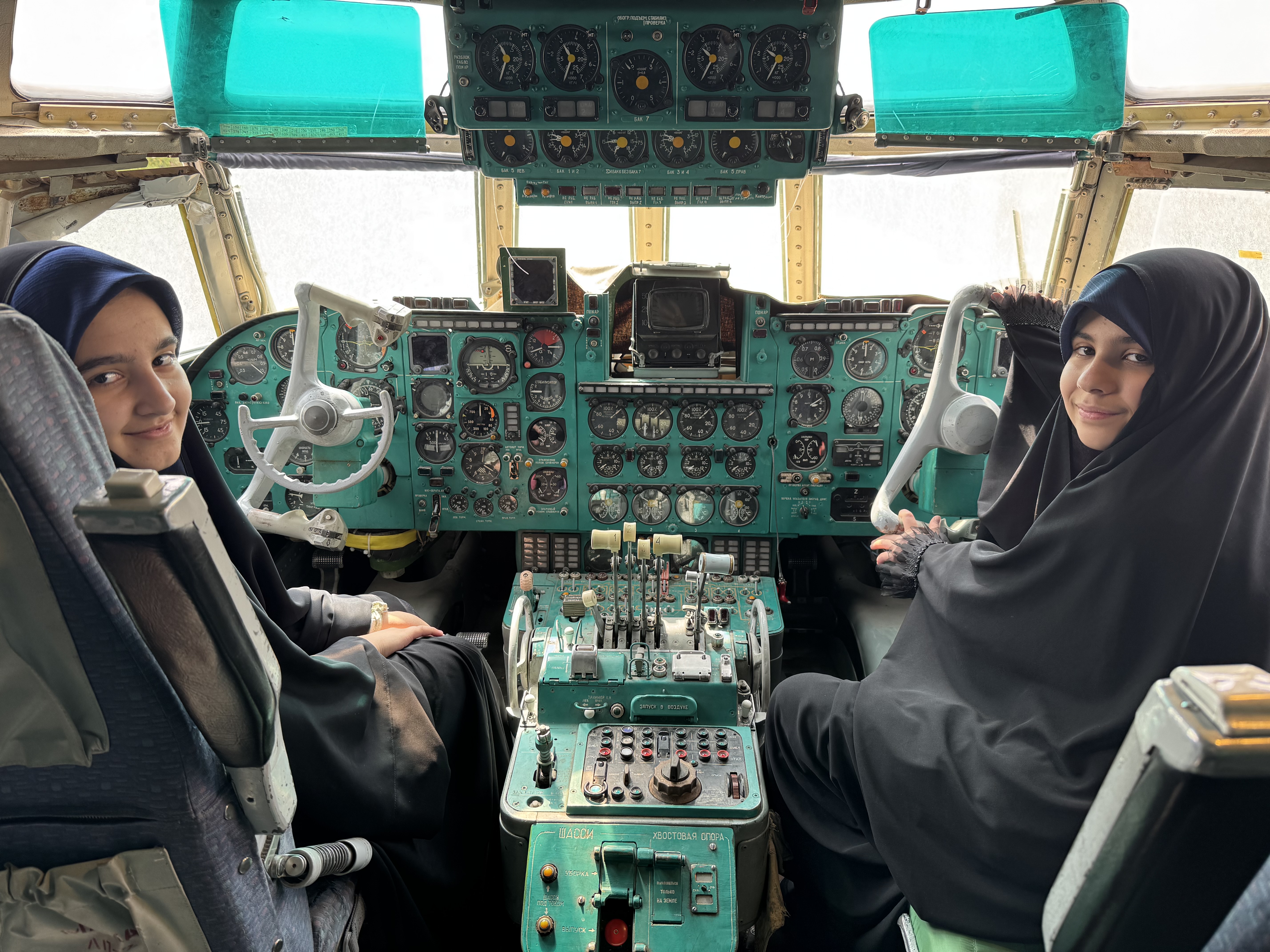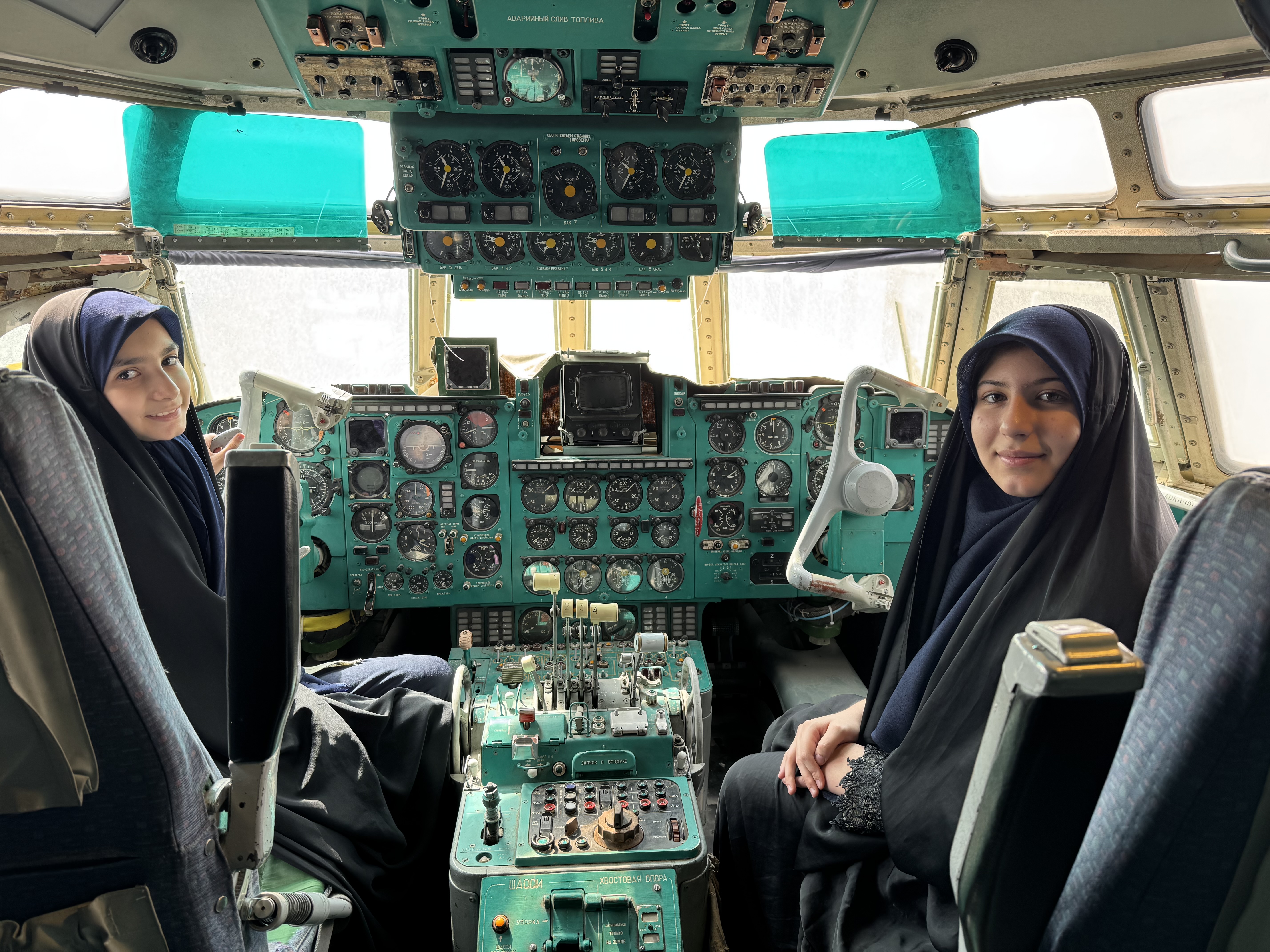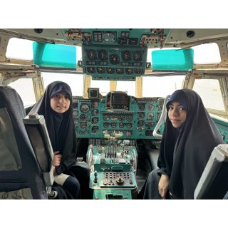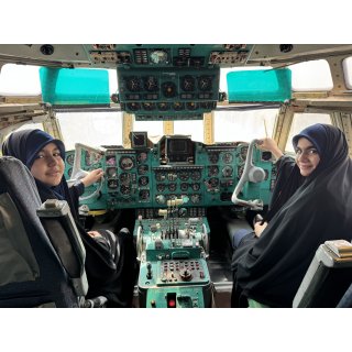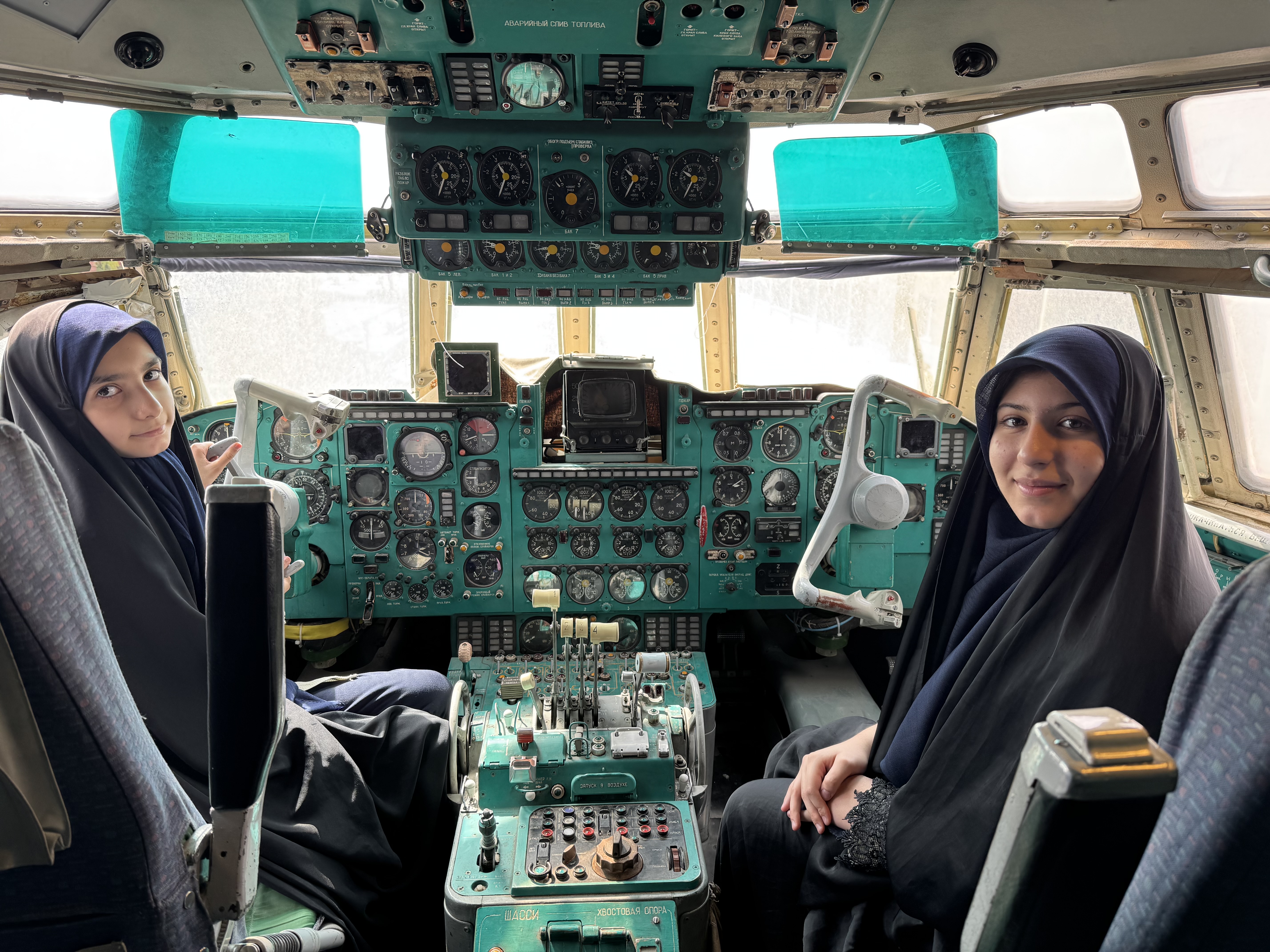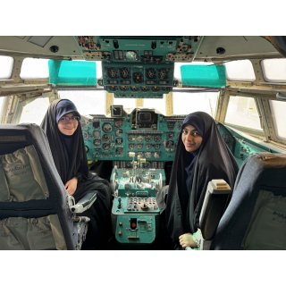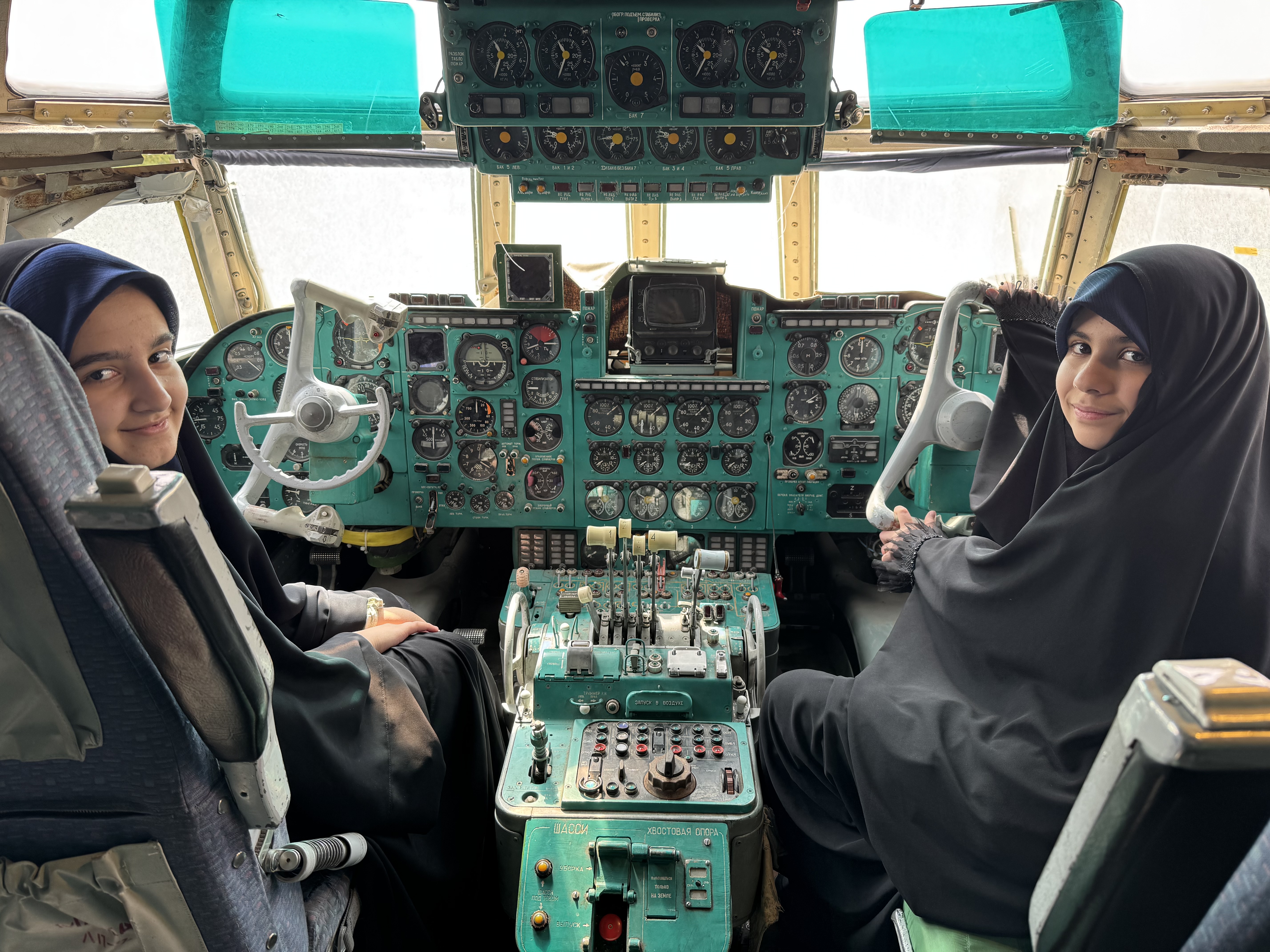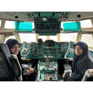 از هیجانانگیزترین لحظات این سفر، ورود به کابین خلبان بود؛ جایی که دختران با شور و اشتیاق پشت فرمان نشستند و طعم واقعی پرواز را چشیدند!
